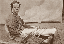 機を織る平埔族の女性。