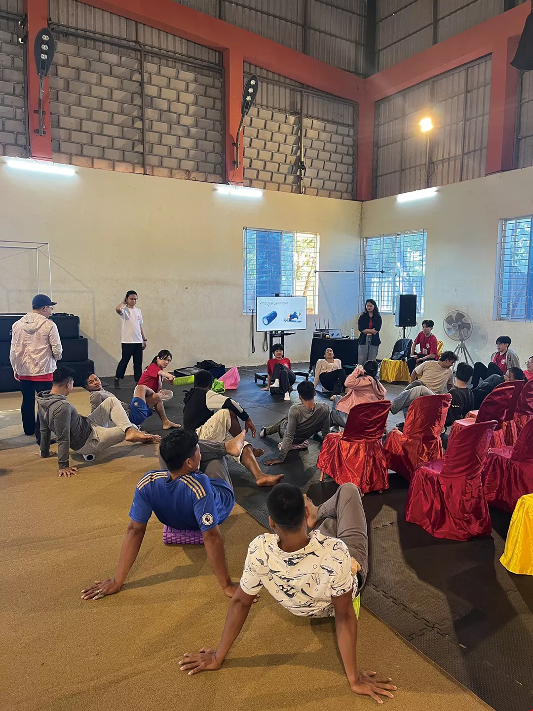 現地のサーカス団にスポーツ傷害の防止方法について教える。