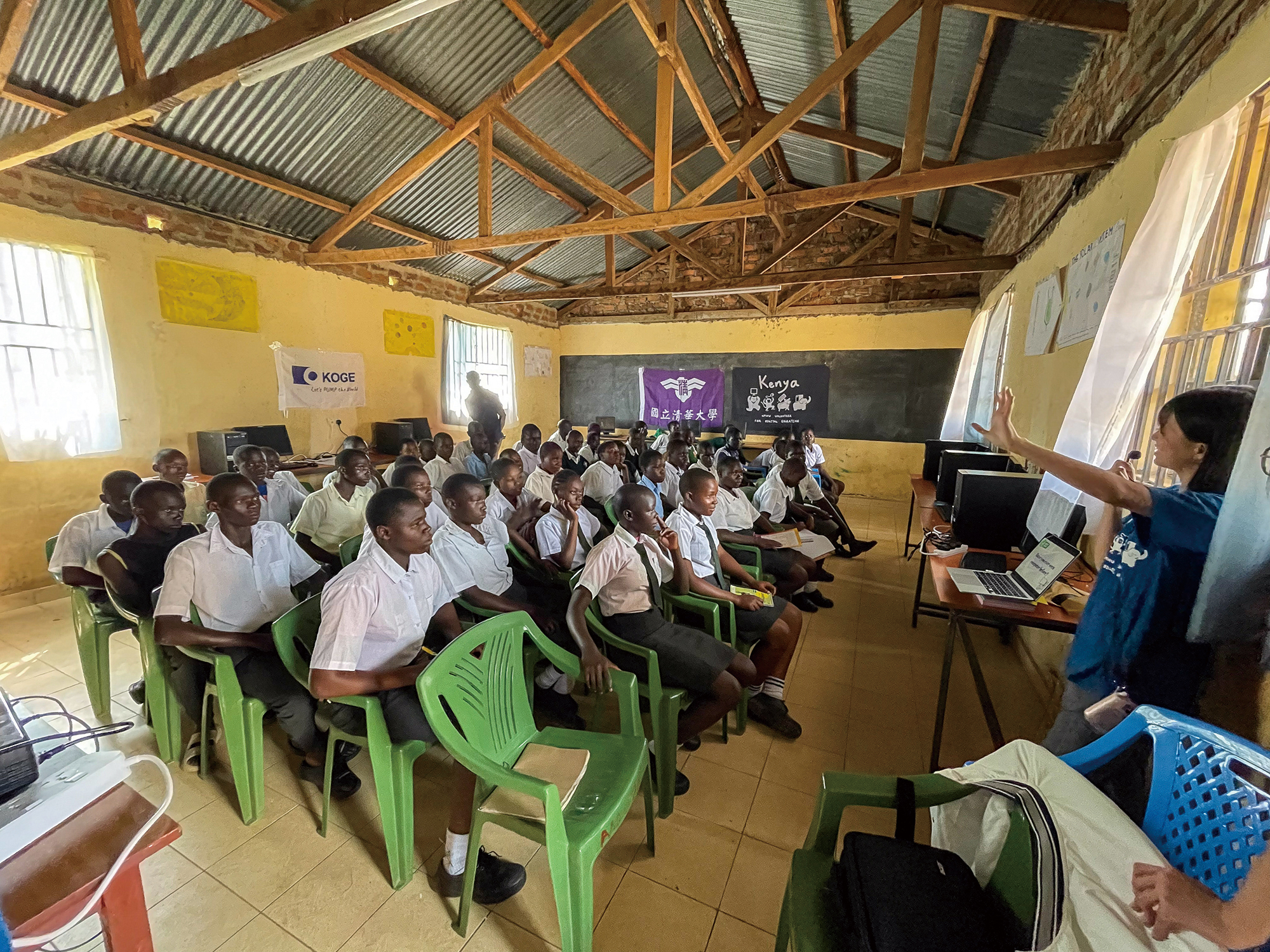 国際志工アフリカ団は、パソコンを実際に使用して学ぶ経験をケニアの生徒に与えている。