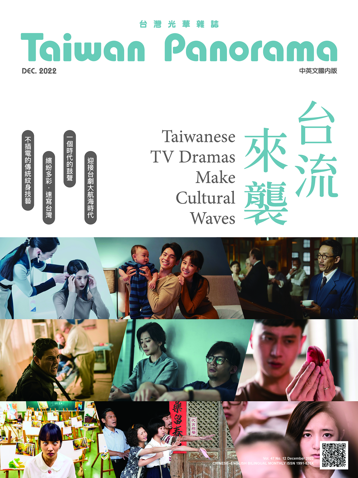 今月のカバーストーリーは、過去40年の台湾ドラマの変化、政府による映像産業推進政策、脚本家の育成、コンテンツのリソースなどを扱い、興味深い分析を通して台湾の映画・ドラマ産業の現在をご覧いただく。