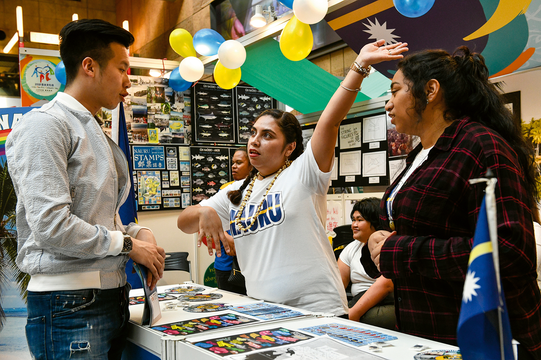 都市間の交流を重視する台南市は、3年連続の参加だ。2016年は赤崁楼、2017年は林百貨店、2018年は安平樹屋と、毎年工夫をこらしたテーマを打ち出している。木の生い茂った家を会場に作り、英語と日本語のガイド付きで、台南の歴史や文化、観光スポットを紹介した。両日とも午後には、台南に関するクイズが催され、正解すると、鄭成功スナック菓子や、台南観光イラスト入りのメンコ、虱目魚の形をした筆箱などの賞品がもらえるので、会場は熱気に包まれ、外国人観光客も興味深げに足を止めて見入っていた。