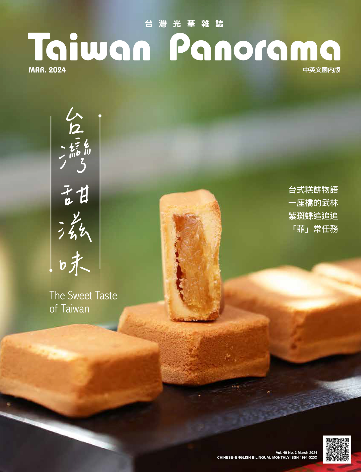 「台湾の菓子には二種類ある。一つは皆とシェアする菓子、もう一つは神のご加護を祈るための菓子である」と『我的幸福糕餅舗(私の幸せな菓子店)』の著者・張尊楨は語っている。甘い菓子は重要な祝い事などとともに美しい思い出を残す。今月のカバーストーリーでは古くからの懐かしい菓子(麻粩、糕點、新港飴)、伝統と革新(パイナップルケーキ、奶油酥餅、緑豆椪)、塩味の効いた菓子(竹塹餅、カレーパイ)、そして新住民が台湾に持ってきたココナッツシュガーやパームキャンディなど、台湾の様々なスイーツをご紹介する。