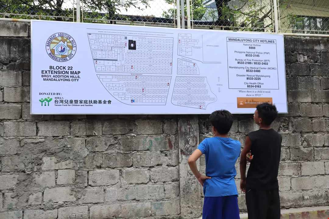 家扶基金会は区役所の防災部門からリソースを引き出し、ともに地域の地図を作成し、火災が発生した時にどう対応するか住民に示している。(家扶基金会提供)