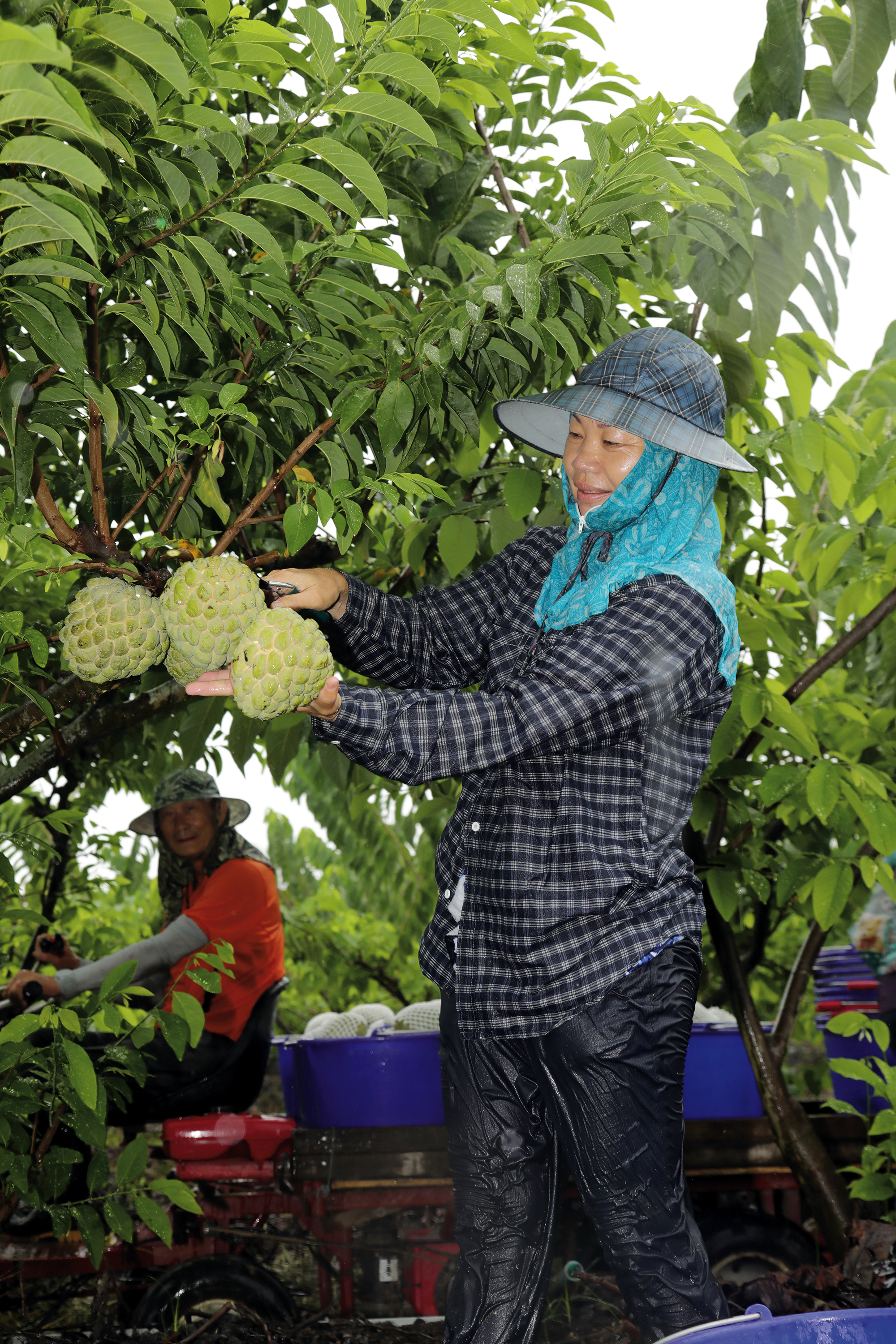 顔銘宏は、台湾で年間生産高60億元の商品作物への応用を例に挙げる。「台東の釈迦頭(バンレイシ)は、毎年10月前が重要な生長期ですが、それはちょうど台風の季節と重なります」バンレイシは台風がもたらす強風と豪雨よりも、台風が中央山脈を越えた後に起きるフェーン現象の影響を受けやすい。フェーン現象による異常な高温と乾燥が深刻なダメージをもたらす。