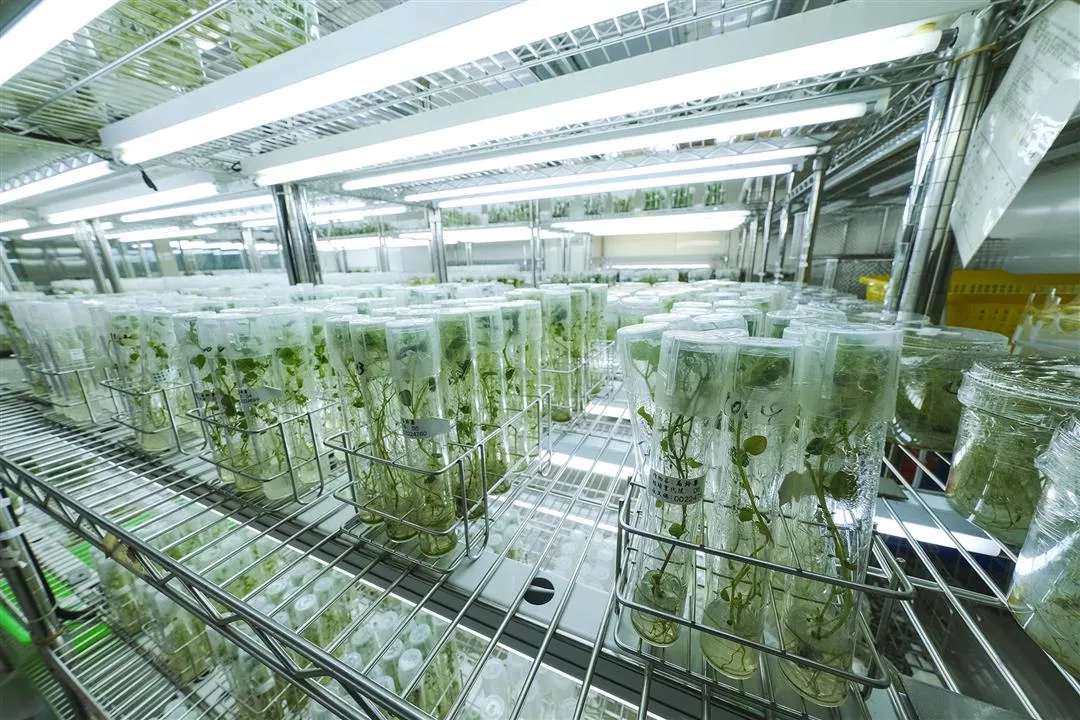 国家作物種原センターでは、サツマイモやジャガイモ、ヤマイモなど、国内の重要な無性生殖作物の遺伝資源を試験管で培養している。(荘坤儒撮影)