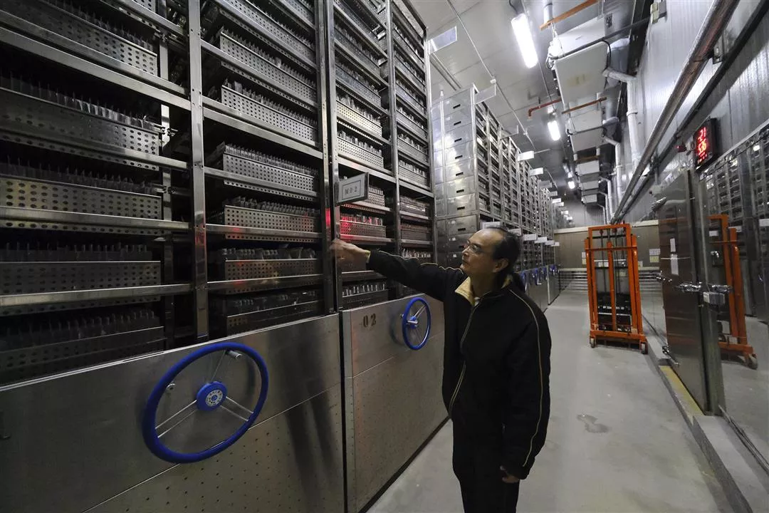 大理石で建てられた国家作物種原センターは吹き抜けのある2階建てで、ここには10万に上る穀類や野菜の種子が、目的別に、短期、中期、長期の保管庫に保存されている。短期保管は研究用、中期保管は交換や繁殖用で、定期的に保存畑に植えられ、発芽率を計測する。長期保管はマイナス20℃の低温・低湿の環境で永久保存しており、品種によって50~100年保存される。