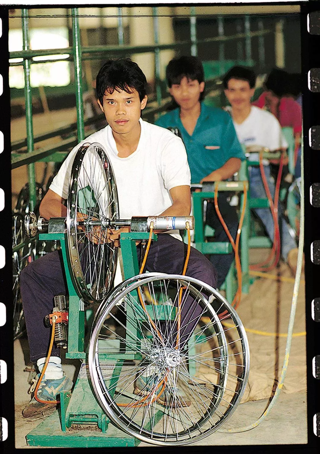 (左)90年代、台湾政府は東南アジアへの投資を奨励した。写真は台湾企業のインドネシア工場。