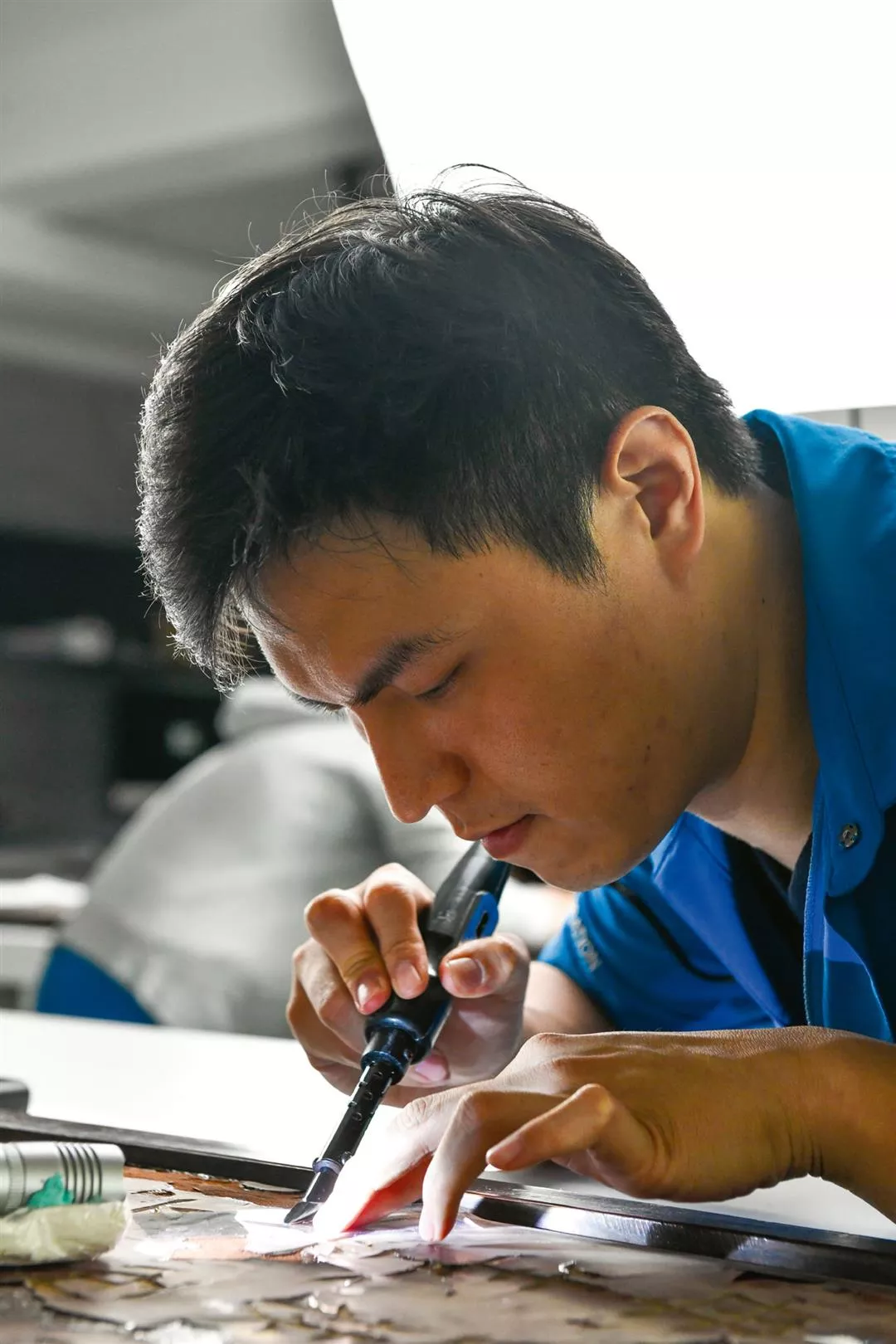 台北は繁華の地で、人の往来も盛んなのだが、TSJチームが常駐する修復センターでは、静かに頭を下げ、腰を曲げて、ライトの下の手元の作業に集中し、時間との対話を続ける。