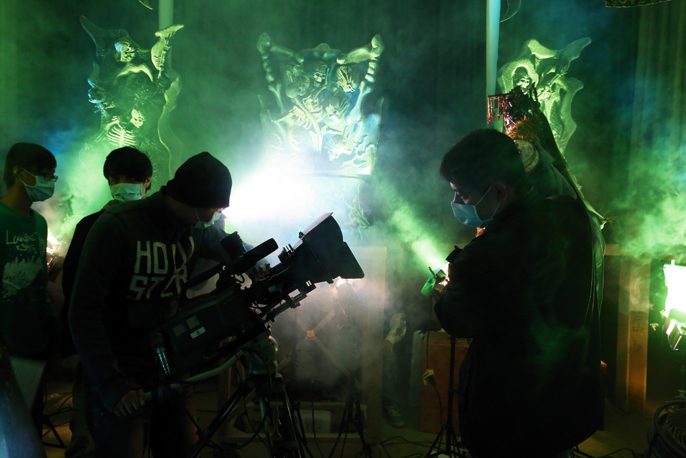 雲林県にある霹靂のスタジオには熟練した人形師や撮影・照明スタッフが集まっている。