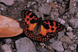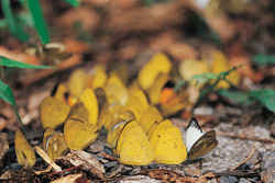 美も哀愁も人間だけのものではなく、自然界にも栄枯盛衰の法則がある。写真はダイミョウキゴマダラが動物の糞を食べている様子だ。