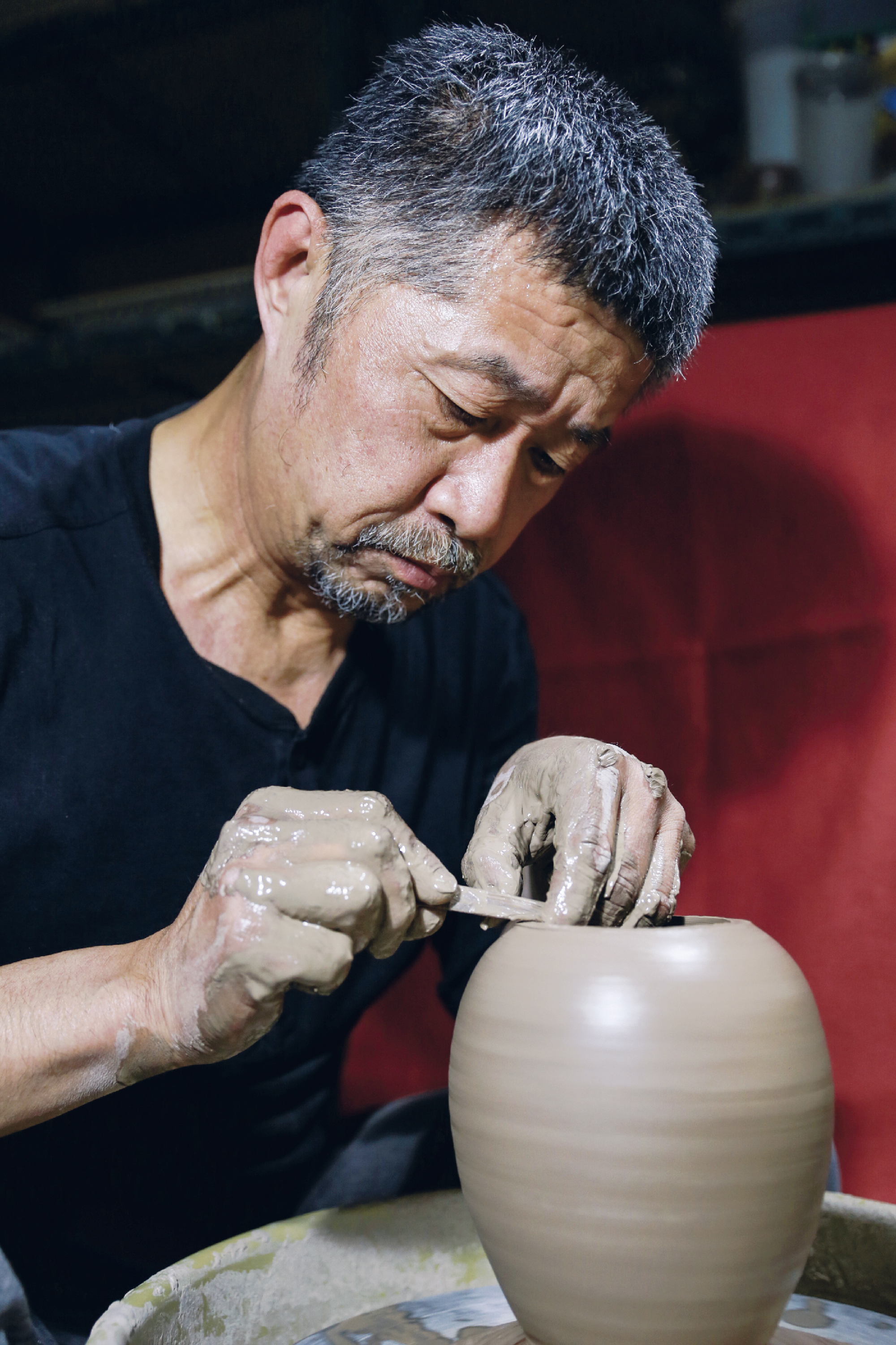 その後、陶芸職人として彼が創作の場に選んだのは三峡であった。もともと彫刻を愛する李志豪は陶芸との融合を試み、自分のスタイル確立を模索していた。「陶芸の創作では土との対話が必要です」と語るように土と火、そして心の調和が陶芸には重要である。彫刻の美を作品に表現するため釉薬を用いず、薪窯を研究し、さらに三峡の土を陶芸素材に用いる。「三峡は環境がよく、水や土の質も良いし、中でも豊かな鉱物質を含んだ土を窯で焼くと、魅力的な趣きの色が生まれます」と話す。