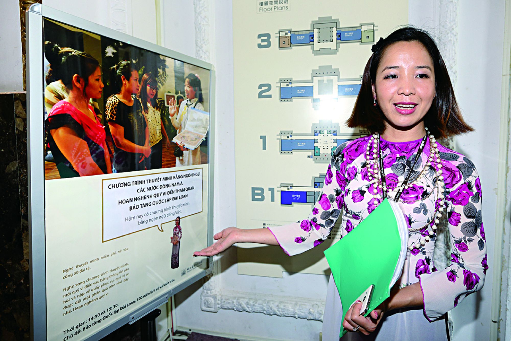 新住民サービス大使の中で、最も人数が多いのはベトナム出身者で、ベトナム語ガイドが必要な時には、皆がアオザイを着てサポートする。そのため、休日の台湾博物館では美しいアオザイ姿の女性を見かけることがある。その中の阮氏玉梅さんは、陳秀萍さんと一緒にガイドの練習をしていた時、台湾人の夫婦から頼まれてベトナム語なまりの中国語でガイドをしたことがある。その夫婦は、彼女たちにお勧めのベトナム料理も訊ね、これから食べに行くと言っていたそうだ。
