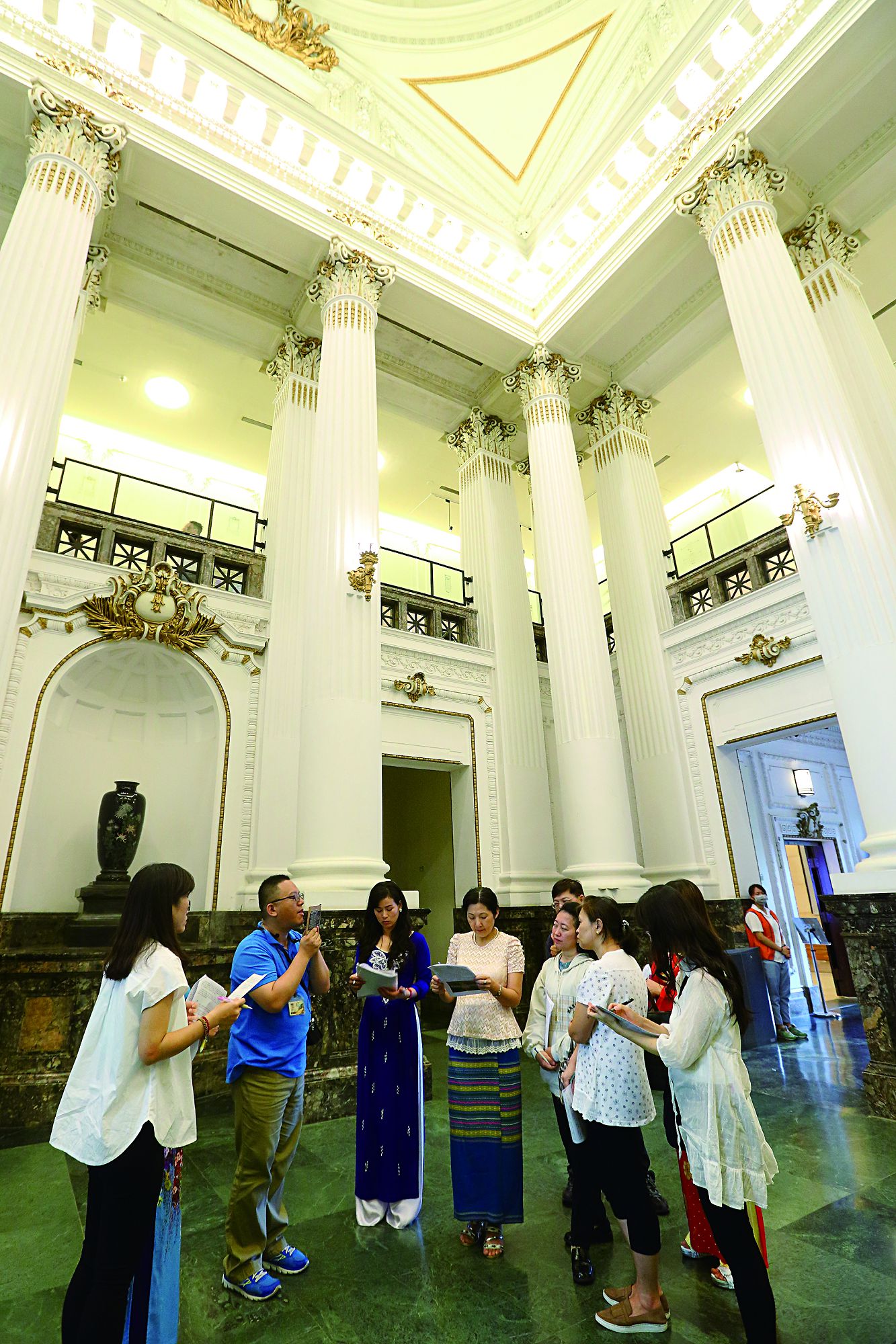 日曜の午後3時、インドネシア語のガイドが始まった。施鷺音さんは鮮やかなブルーの伝統衣装ケバヤをまとい博物館の外で、一世紀にわたって台北を見守ってきた美しい建築物について説明していた。アメリカから来たインドネシア人と、台湾科技大学と政治大学のインドネシア人留学生が彼女の説明に聞き入っている。施鷺音さんの流暢なインドネシア語は言葉もはっきりしていて、その姿は自信に満ちている。説明する身体の動きに合わせてイアリングが揺れ、その姿は何とも言えない感動を呼ぶものだった。