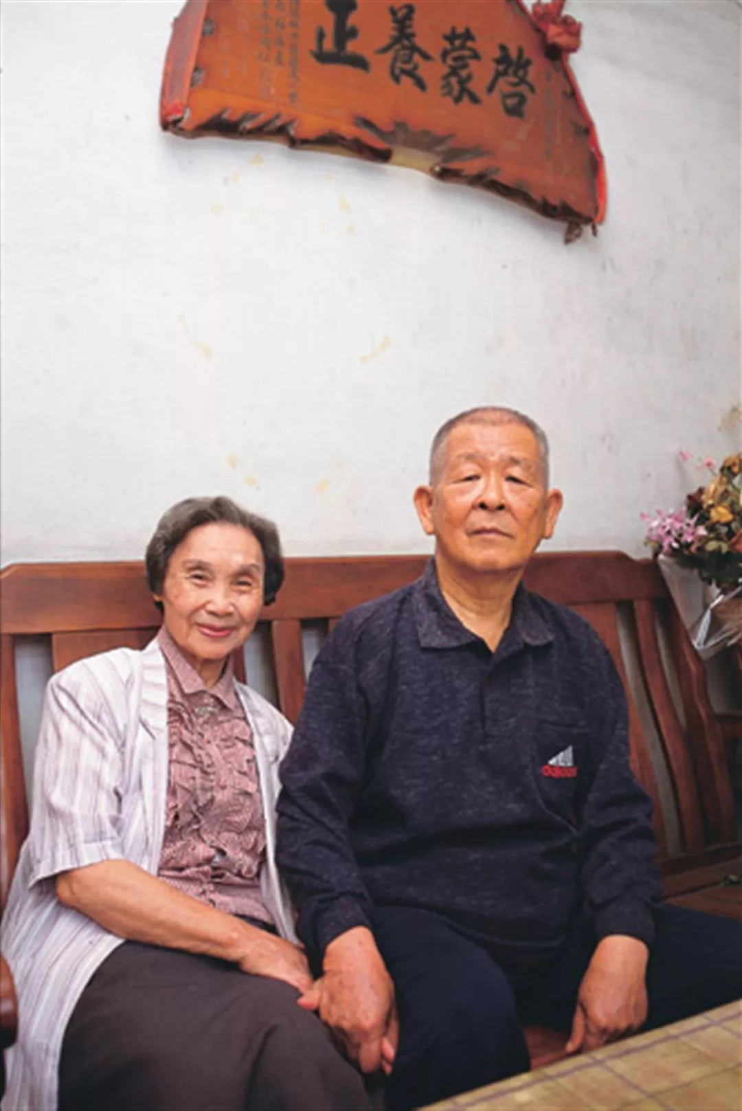 妻の陳月得の手をとる葉石濤、二人はともに半世紀にわたる浮き沈みを経験し、文学創作者に対する残酷な試練を乗り越えてきた。長い歳月を寄り添ってきた二人は今も仲がいい。