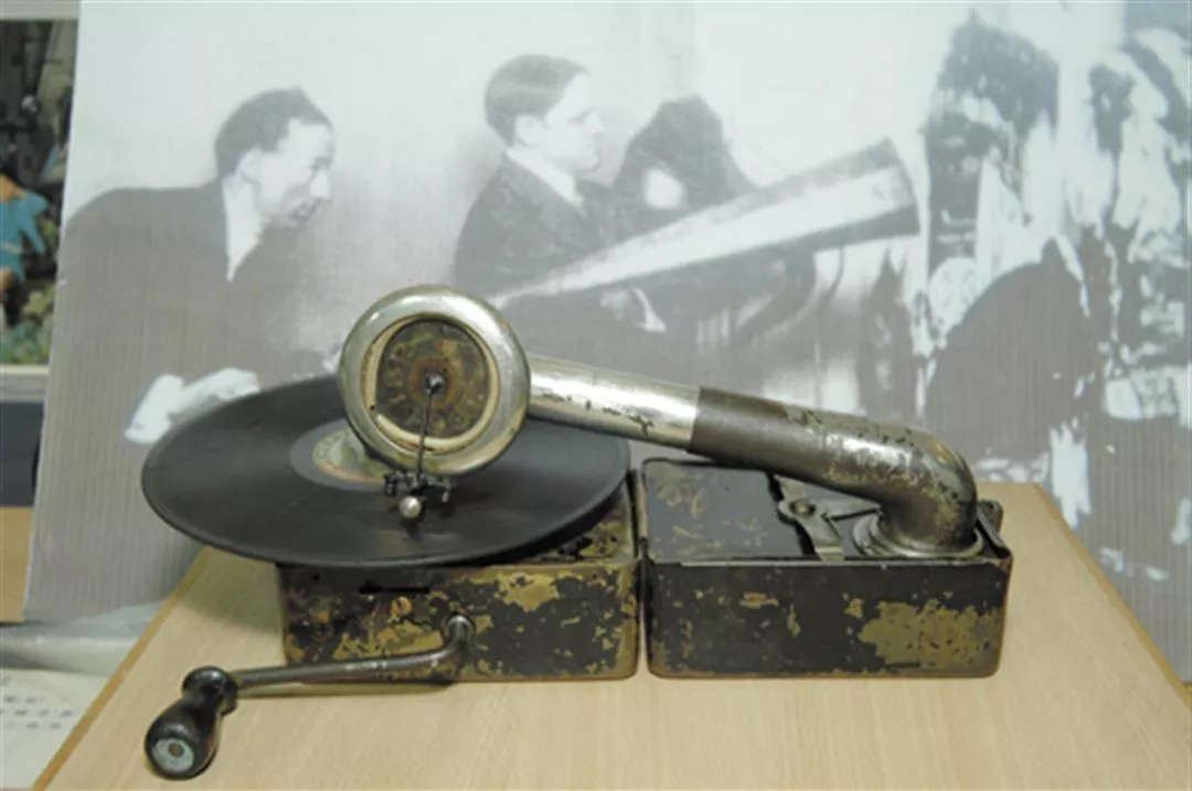 19世紀末のエジソン式円筒型蓄音機、すでに百年以上の歴史を持つ。