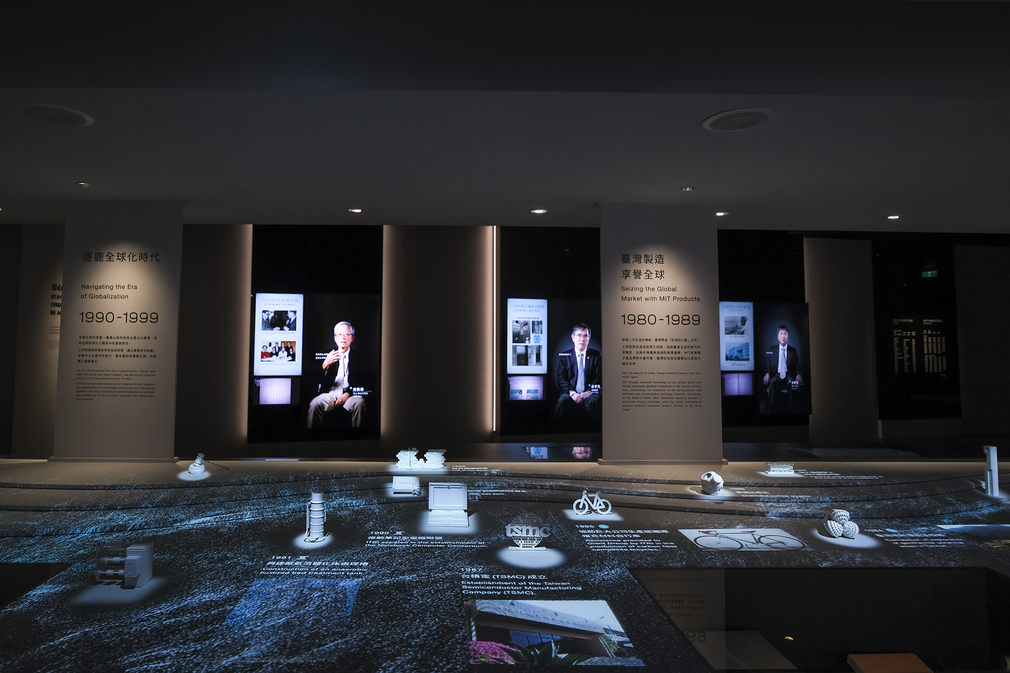 「TSMC創新館」では、TSMCとその革新的なビジネスモデルがIC設計と応用を推進し、現代の生活を変えた様子が展示されている。