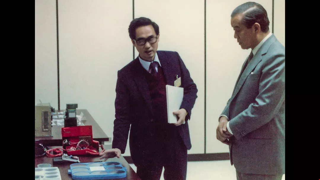 胡定華氏(左)は自ら進んでRCA技術移転プロジェクトの責任者を引き受け、台湾の半導体産業発展に対する情熱と先見性を示した。右は当時の経済部長(経済相)孫運璿氏。(CNEX提供)