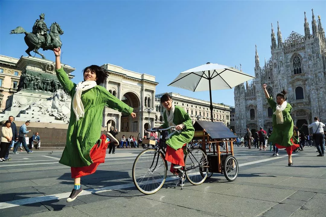 2015年のミラノ国際博覧会で、台湾館のボランティアが着た布衣は外国のメディアからも注目された。 (鄭恵中提供)