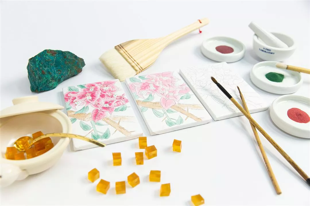 百年余り前にさかのぼると、台湾の画壇では、伝統の水墨画とも西洋画とも違い、色鮮やかな岩絵具を用いた、繊細なタッチと美しい色彩の絵画が一世を風靡していた。これが現在の「膠彩画」、当時は「東洋画」と呼ばれたものだった。