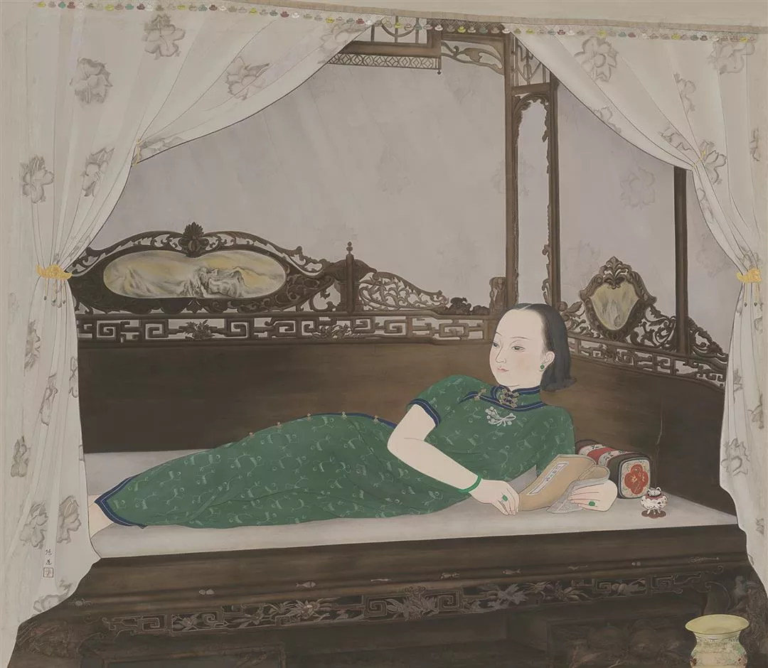 陳進「悠閑」、1935年、台北市立美術館所蔵。