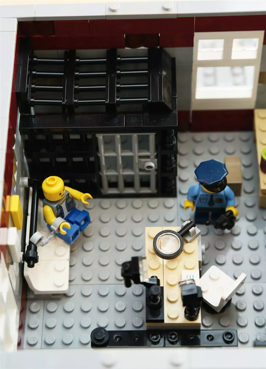 外観だけでなく、内部まで丁寧に作り上げる。「派出所」の2階の取調室では入れ墨をした人が手錠をかけられて壁のパイプにつながれている。