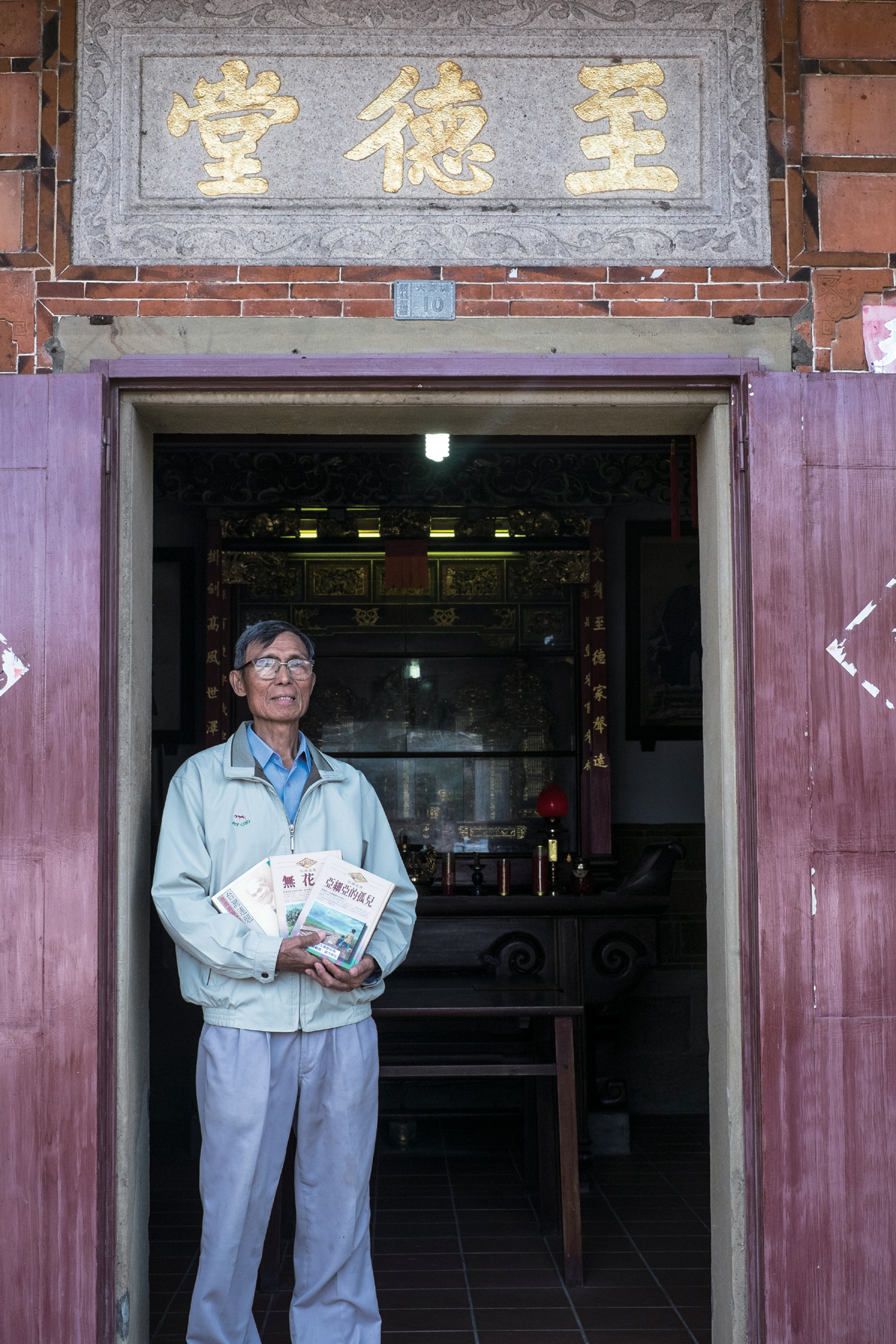呉濁流旧宅の「至徳堂」には呉家の祖先が祀られている。祖先が大陸から渡ってきてここに根を下ろし、呉濁流は五代目に当たる。1840年竣工の旧宅は戦火にも見舞われ、幾度か改築されて2009年に今の姿になったが、子孫の多くは都会へ出て行き、至徳堂に祖先を拝みにくる人も少なくなった。現在ここを管理する七代目、呉濁流を大叔父と呼ぶ呉戴堯は、歴史的にも文化的にも貴重な建物を廃れさせたくない、また文壇における呉濁流の貢献を後世に伝えたいと考えた。そこで親族と話し合い、新竹県文化局の協力も得て仏堂を修築し、2011年に一般公開したのである。