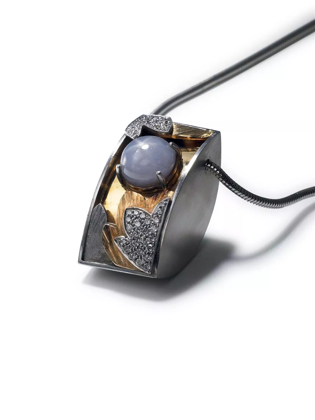 亜熱帯の花園(1998) 4.2×2.1×2.6㎝ スターサファイア、ダイアモンド、750イエローゴールド、750ホワイトゴールド