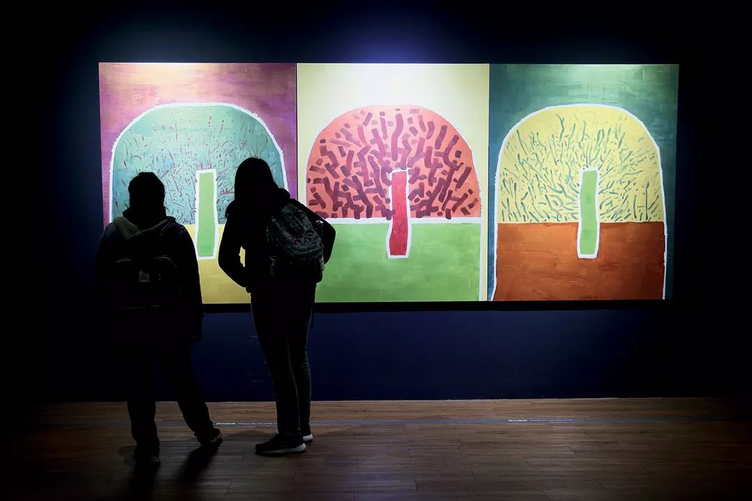 阮文盟は絵画を用いて作品誕生の理論を伝える。それは美意識や生活経験、周囲の空間や物事などが互いに影響しあって生まれる美の探求である。(林格立撮影)