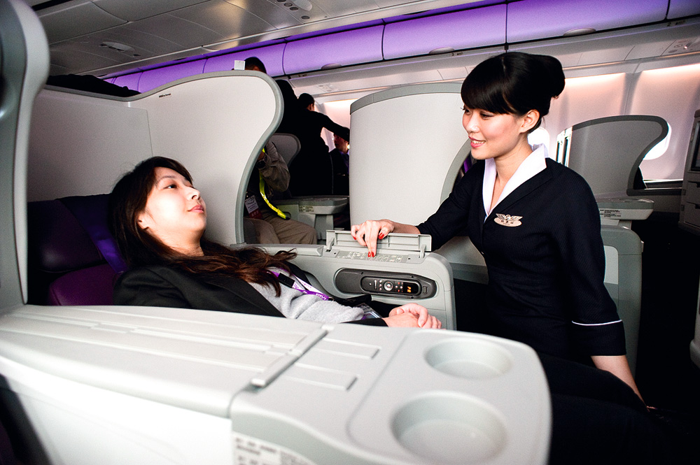 高級感ある機内食や行き届いたサービスで、復興航空は数々の賞に輝いている。