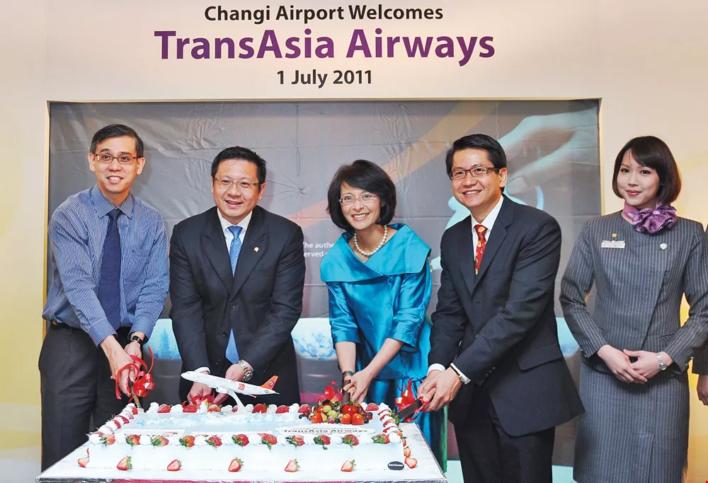 復興航空はここ数年、積極的に新たな航路を開いている。写真は2011年7月、シンガポールへの就航の祝賀式。