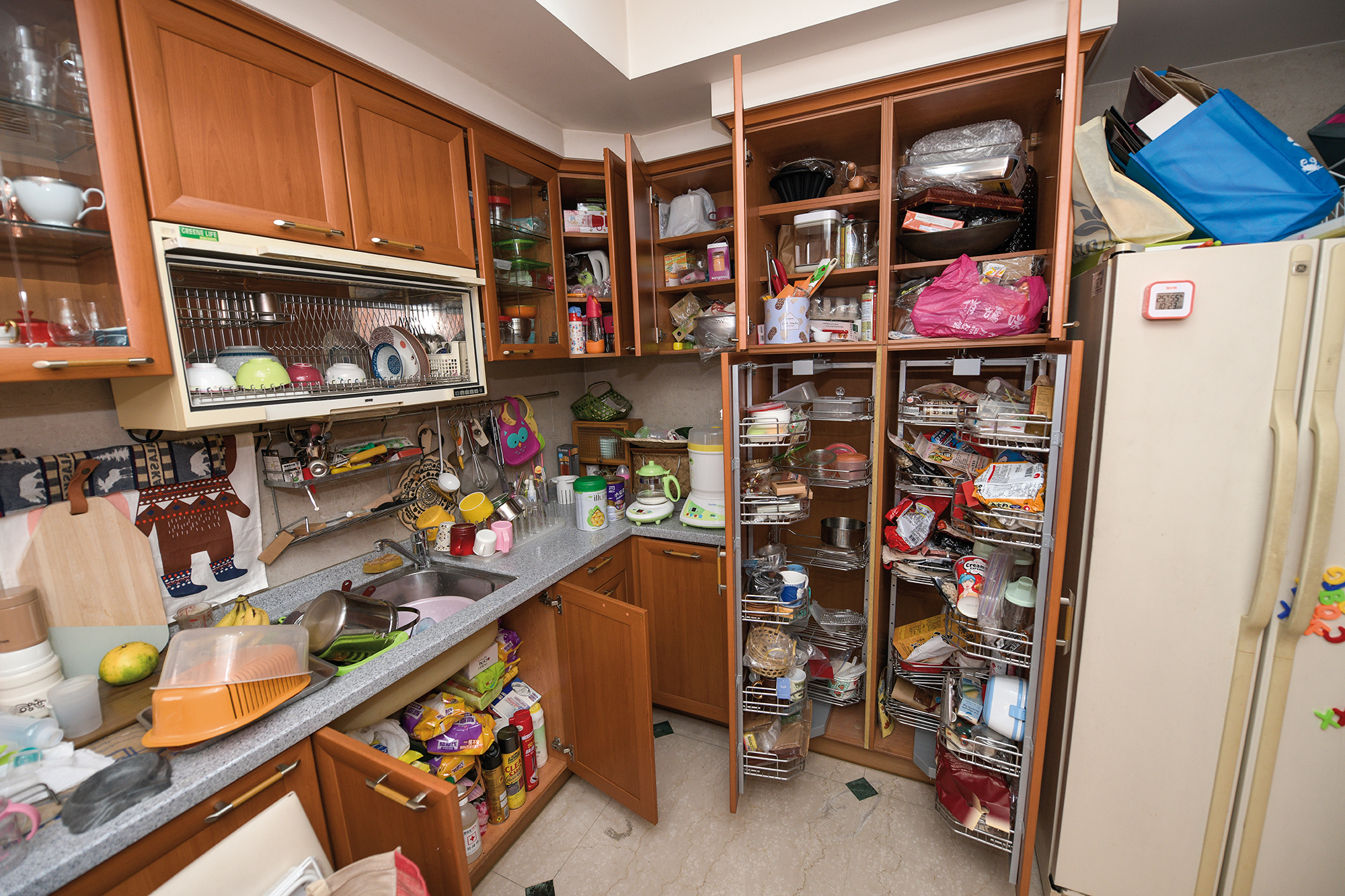 (右)頼庭荷(左)は、まず衣類をすべて取り出し、依頼者に分類させる。要るか要らないか決めていくプロセスで、しだいに自分の好みが明確になっていく。