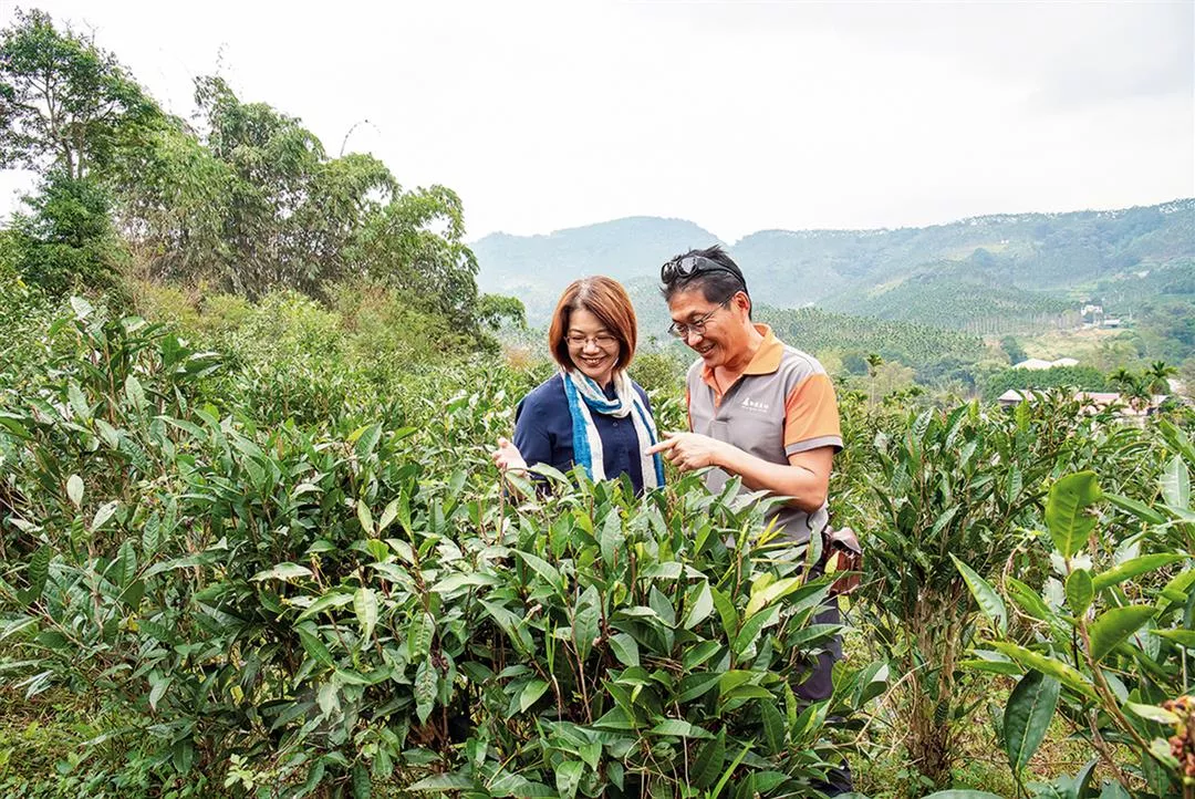 「和菓森林」総経理の石茱樺(左)と夫で茶荘主の陳彦権は、日月潭の「紅茶ブランド化」と「茶工場茶荘化」の推進者でもある。(林旻萱撮影)