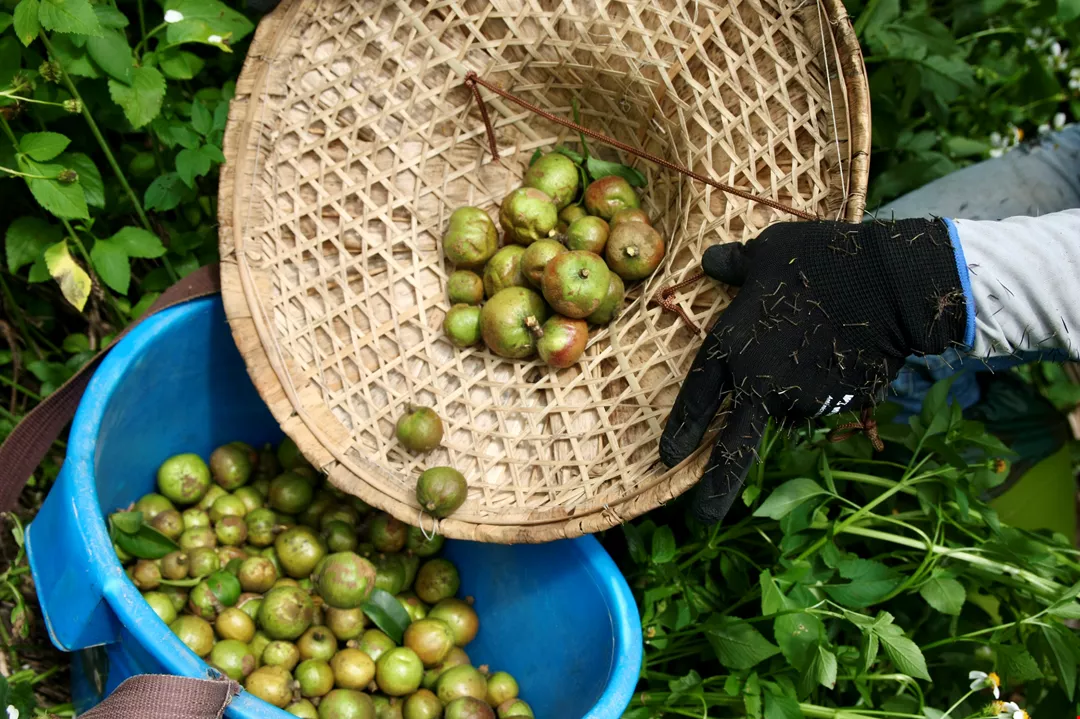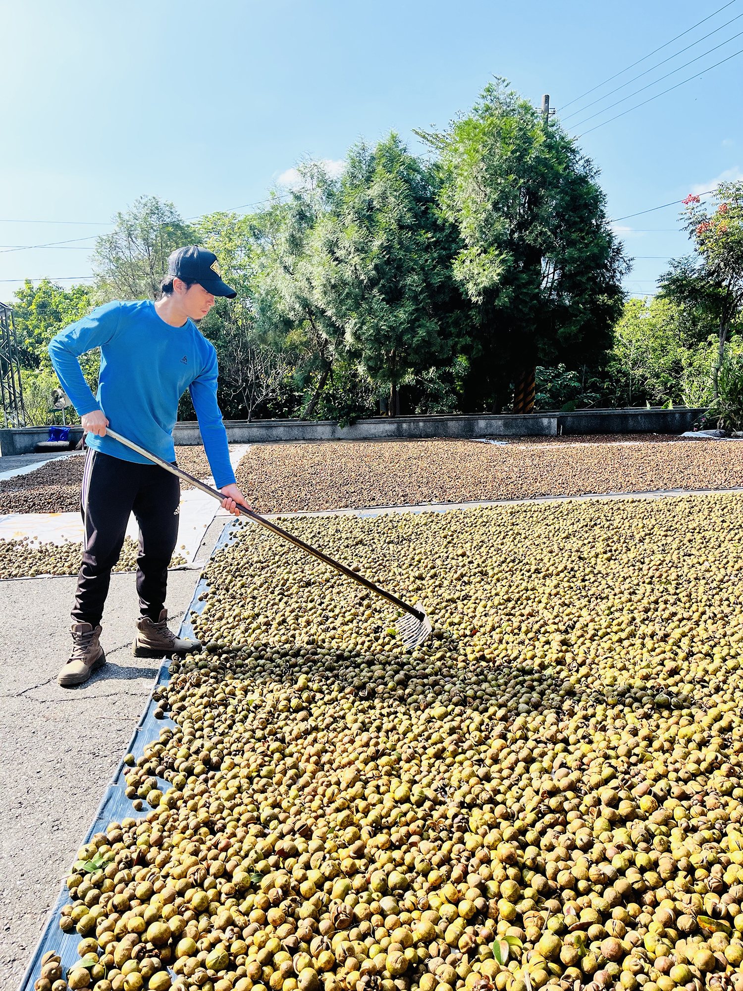 実は陳致甫の父親である陳文雄は8年前、食品安全問題が騒がれた頃、4.8ヘクタールほどのビンロウ園をやめて、1万粒の油茶の種子を植えたのだそうだ。けれども5年後ついに収穫期を迎えた時、作業ができる人はもういなかった。当時、人本教育基金会と台湾動物社会研究会にそれぞれ勤務していた2人は、2021年のコロナ禍、リモートワークに切り替わったため南投に戻り、それを機に仕事を辞して農業を始めた。最も重要なのは彼らがビンロウ園を油茶の果樹園に変える活動を一種の社会運動だと捉えていたことだ。