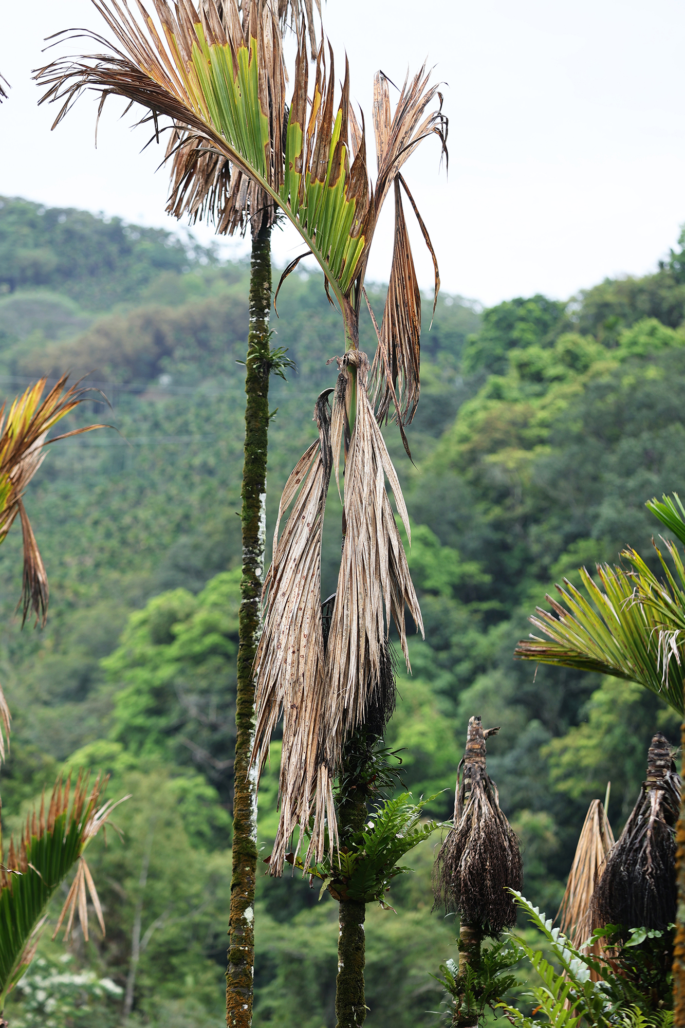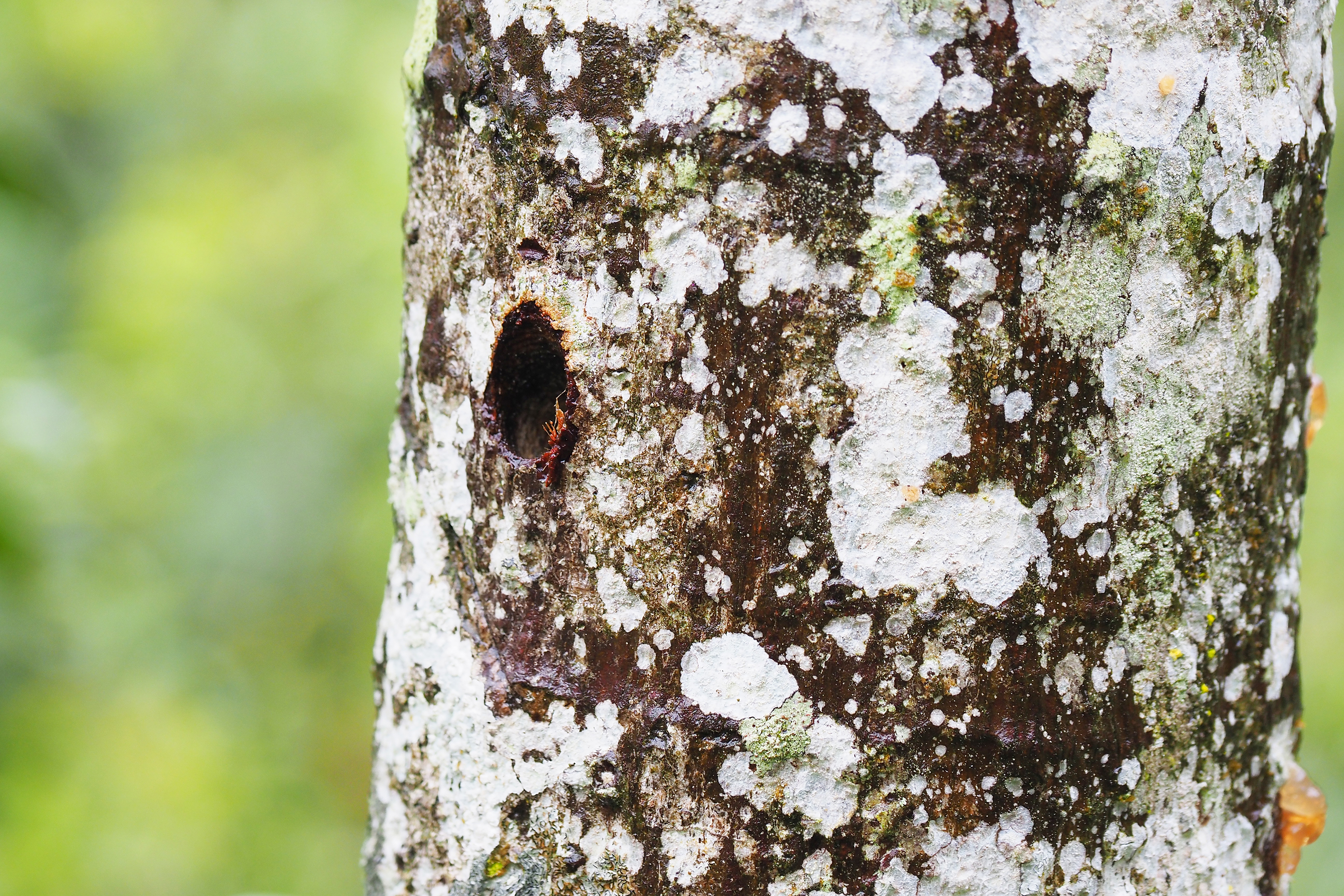 ビンロウ園の廃園スピードを加速するため、ビンロウ樹の幹に孔を穿ち高濃度のホウ酸溶液を注入して脱水を促す。