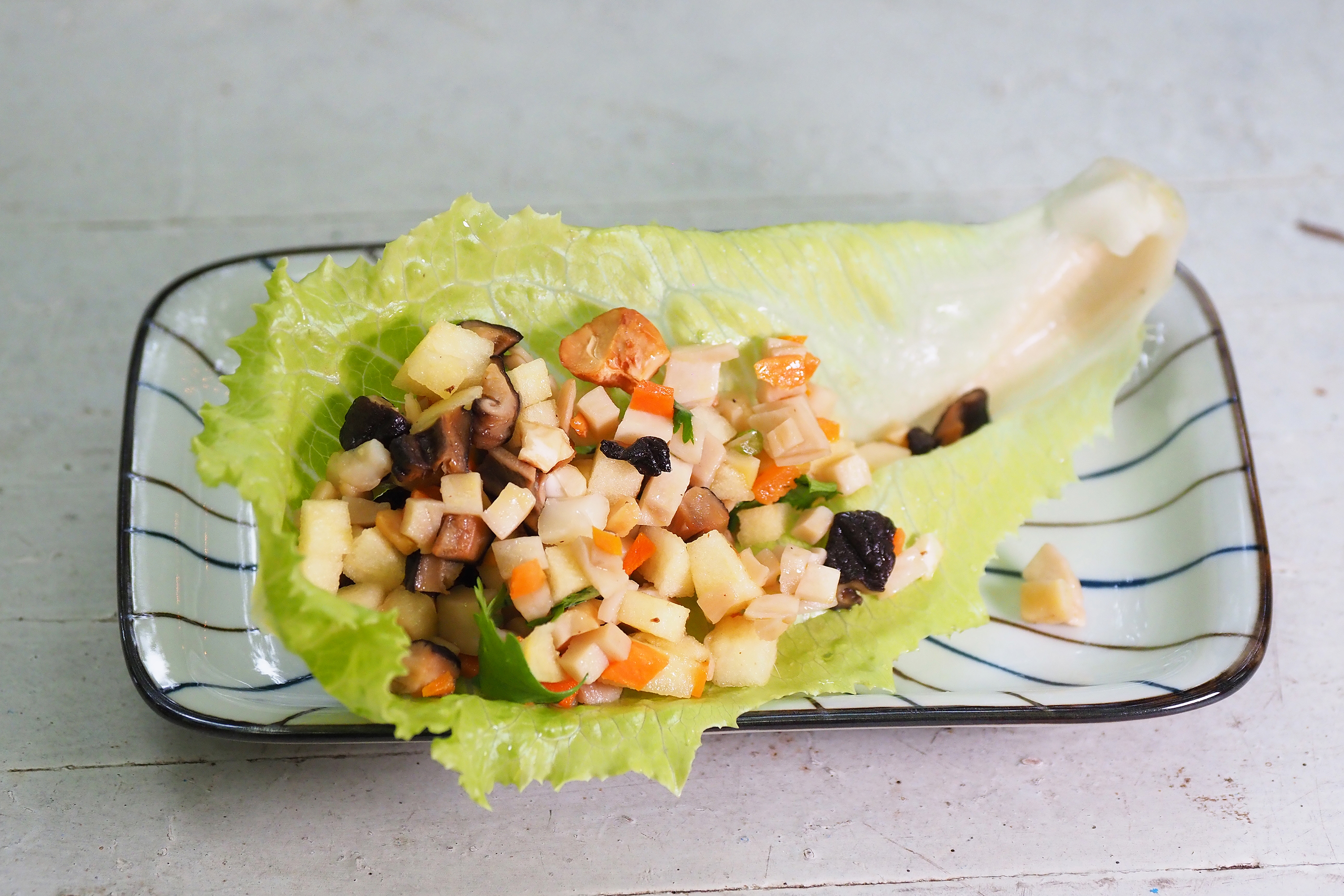 ベジタリアン向け植物由来エビの苦茶油炒め。