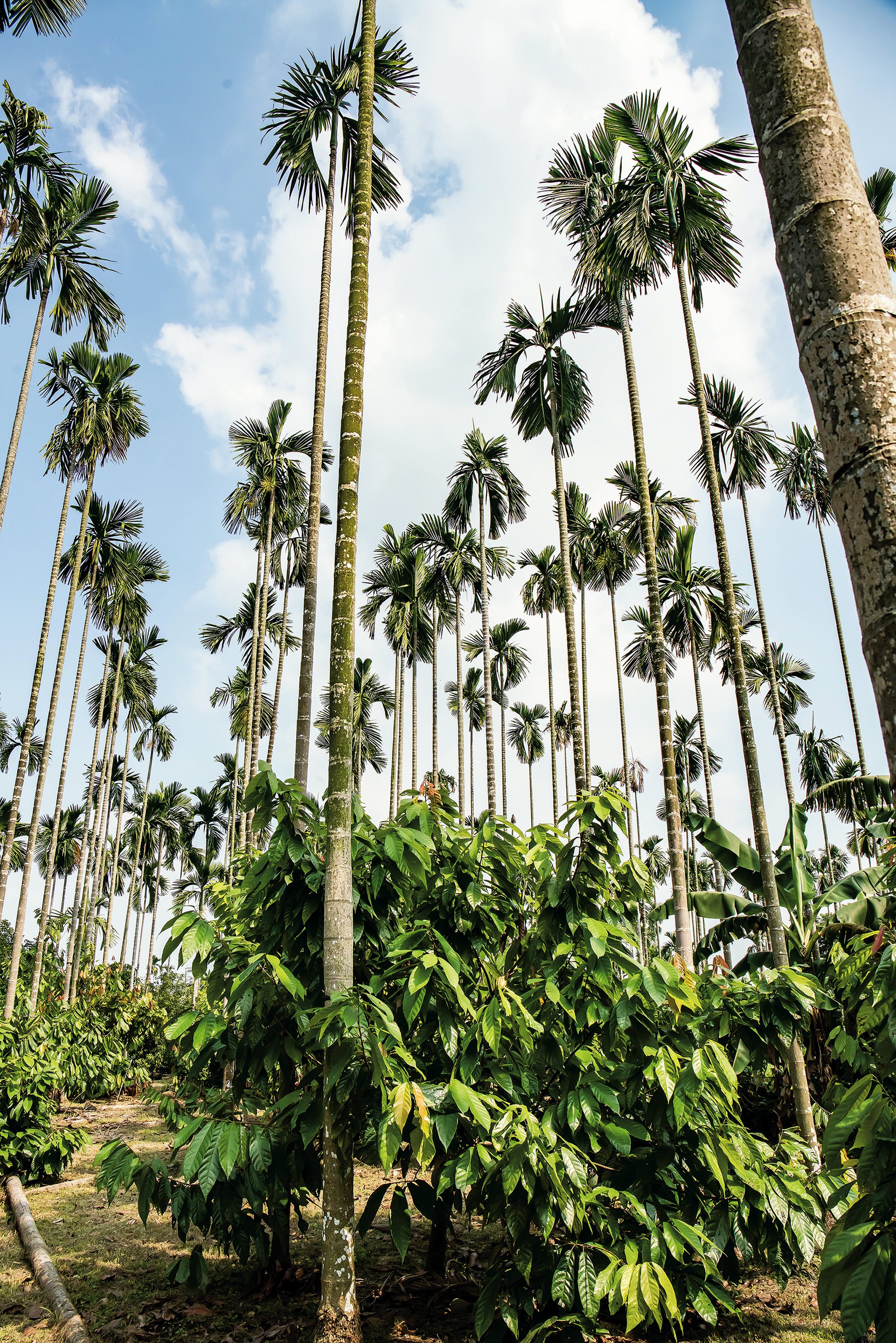 屏東県の産地では、ビンロウ樹とカカオの木が混生しているのが特徴だ。