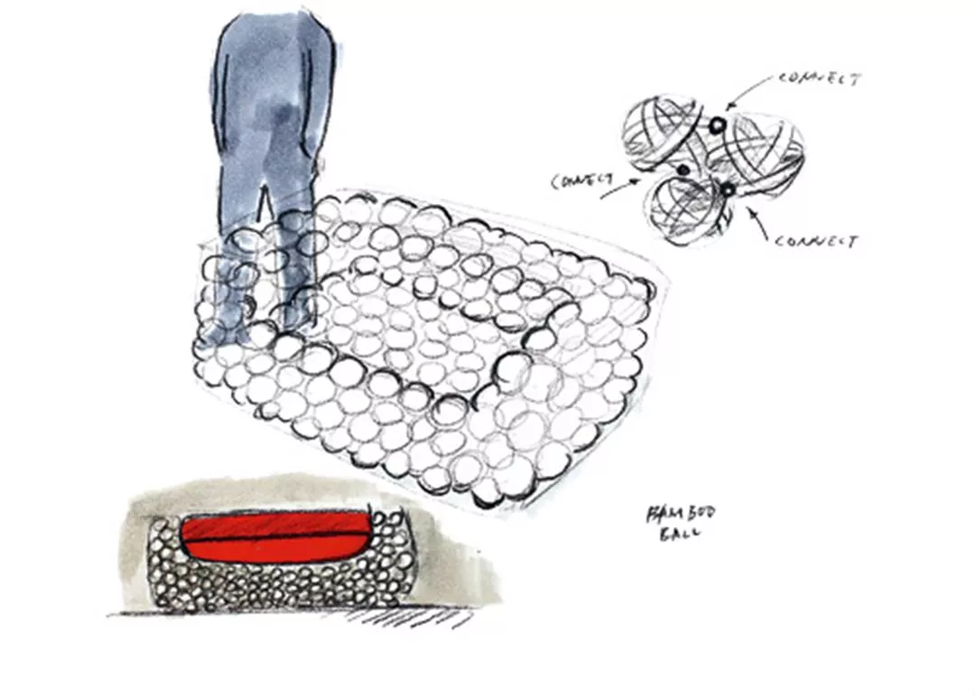 2008年にフランスで注目を浴びた竹のスツールは、最初は平坦な座面であったが、クリエイティブディレクターの意見から人体工学に合わせた円弧を取り入れ、美しい造型と快適な座り心地に改造した。