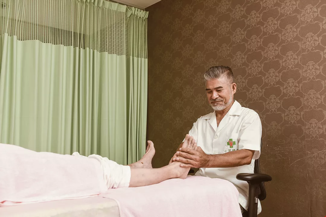 林天扶の本業は足裏マッサージである。外見の若々しさを保つには健康に気を遣わなければならないと言う。