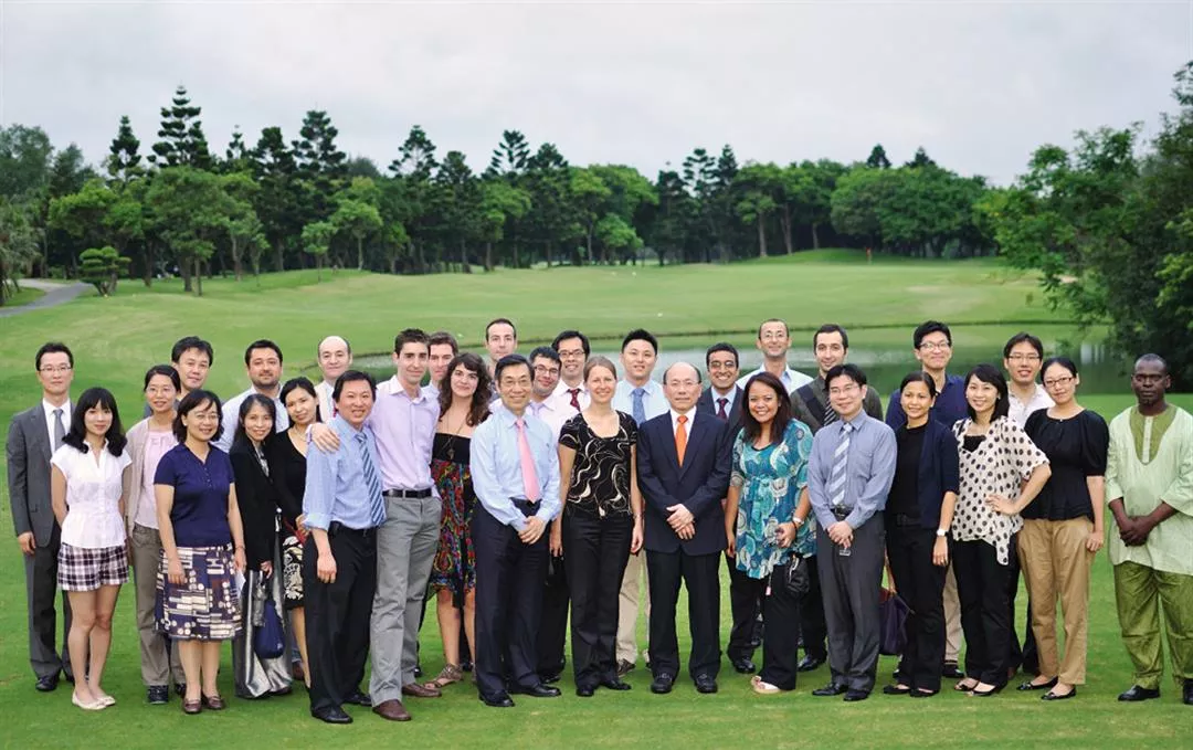 マイクロサージャリーは極めて高い集中力を要するため、魏福全(中央のピンクのネクタイ)は医療チームに、なるべく大自然に触れてリラックスするよう勧めている。写真は長庚病院整形外科の同僚や外国人医師とともに、林口ゴルフ場で。