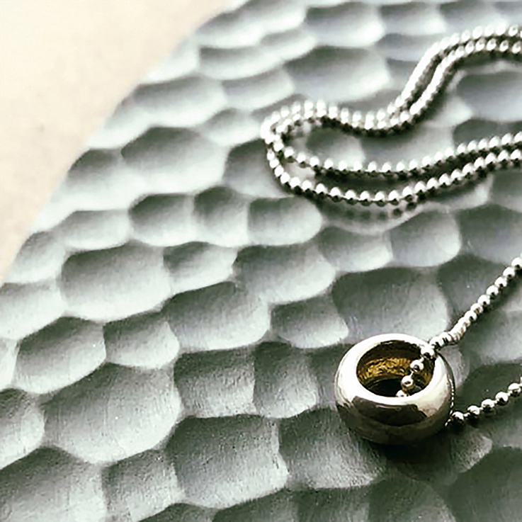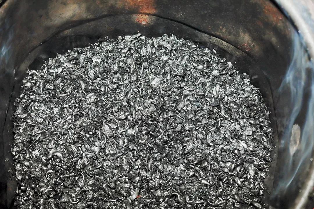 高温で焼かれた菱殻はグラファイトのような化学構造を持ち、金属のように黒光りしている。