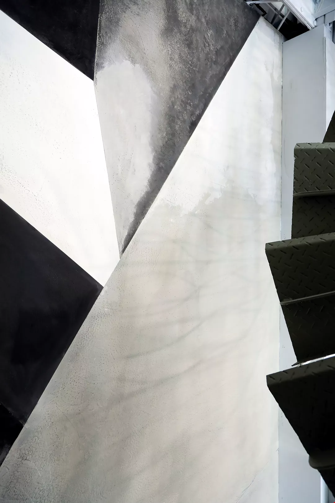 「楽土モルタル」の壁面。流行のインダストリアル・スタイルだ。
