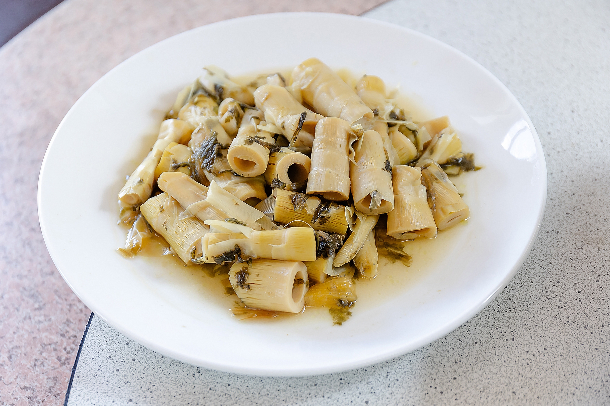 蓮華池員工餐廳主廚以各種竹筍變出家常筍餐:切丁的綠竹筍裝盤就是道甜嫩的涼筍,麻竹筍加排骨湯老少皆愛,小吃攤、滷肉飯便當常見的竹筍滷梅乾菜,近年引進種植的甜龍筍炒木耳、肉絲,過年或辦桌的大菜筍乾封肉,以及以竹山名產醬筍煎蛋。
