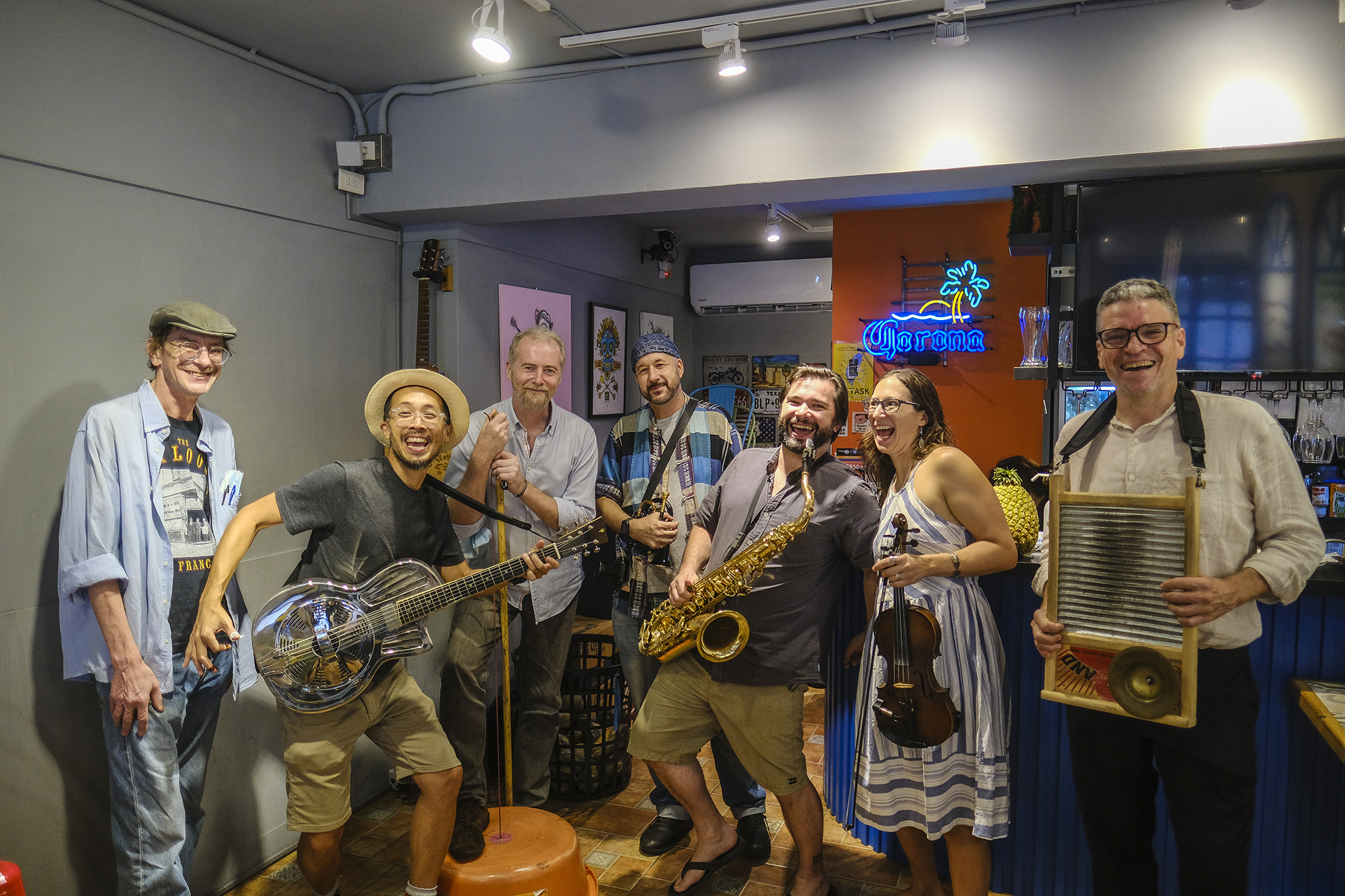 母語為英文的David挑戰用台語演唱:「男女雙雙,排做一排,跳torotto,我上蓋愛」。Zach吹著薩克斯風,Cristina拉小提琴,有時候二人的孩子會坐在嬰兒車裡,望著他們表演。Conor吹口風琴,TC演奏小號,Tim刮著鐵製洗衣板,敲著鈴鐺,擅長踢踏舞的Will手舞足蹈。