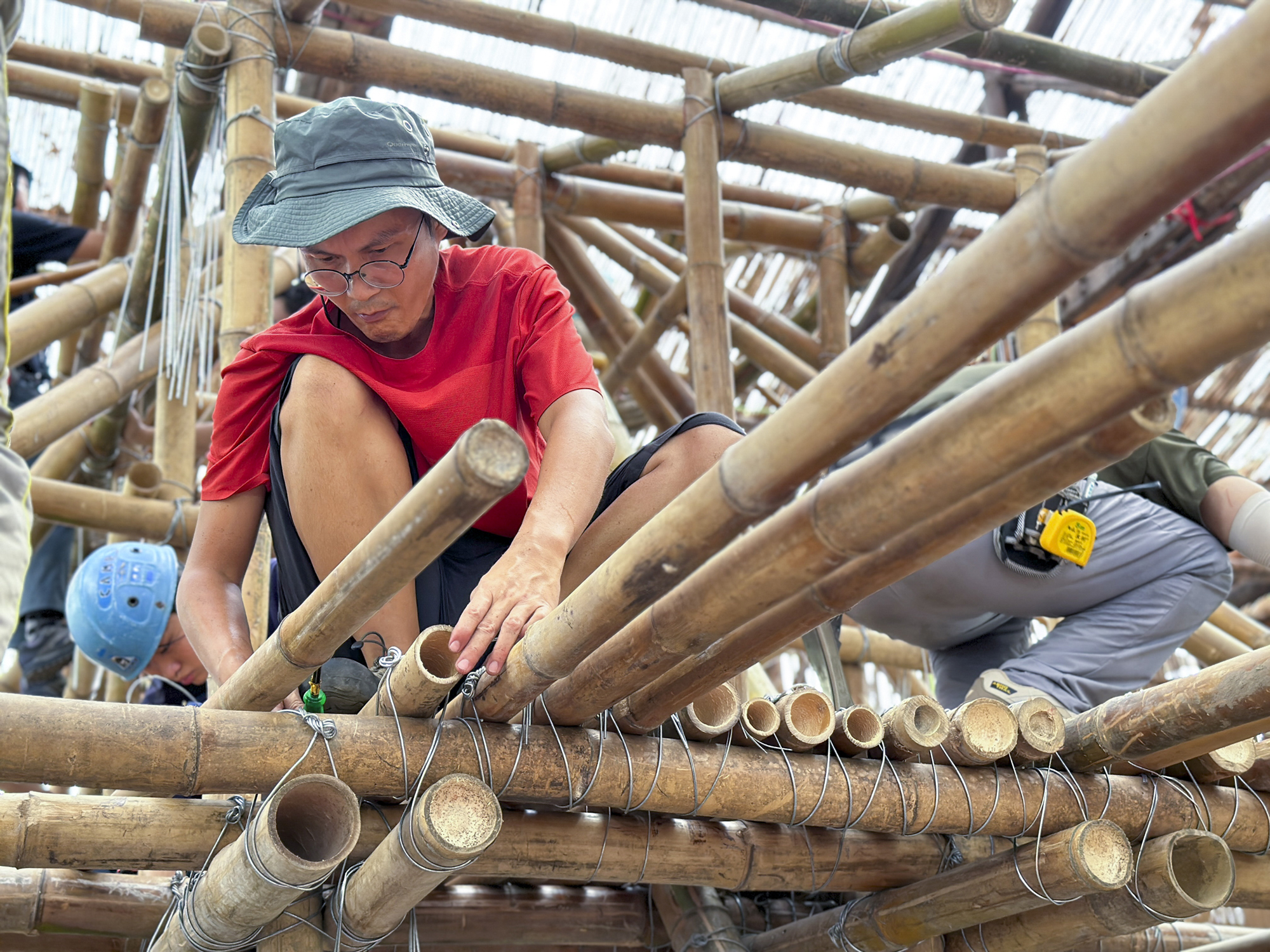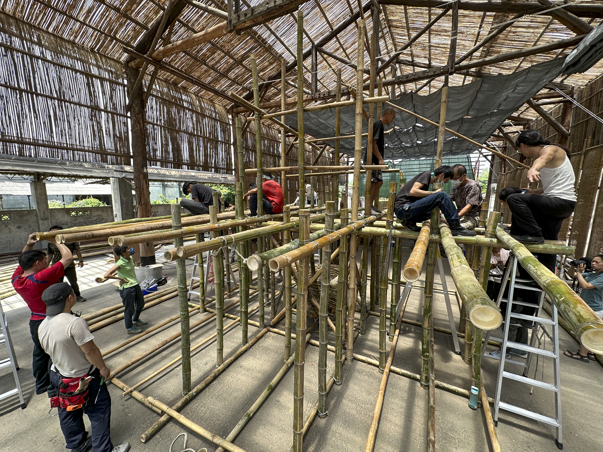 หลินหย่าอินและ Ahung Masikadd เปิดหลักสูตรการก่อสร้างด้วยไม้ไผ่แบบพูยูม่าในมูลนิธิการศึกษาลี่เหริน ดึงดูดผู้สนใจเข้าร่วมเรียนจำนวนมาก (ภาพโดย อู๋เจียโหย่ว จากมูลนิธิการศึกษาลี่เหริน)