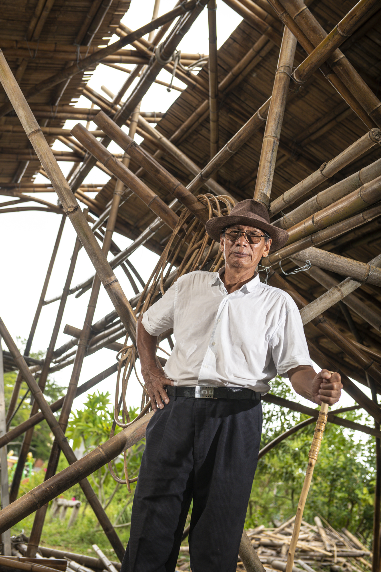 Ahung Masikadd สอนเทคนิคการก่อสร้างด้วยไม้ไผ่โดยใช้รูปภาพง่าย ๆ แม้ว่าเขาจะไม่เคยเรียนการเขียนแบบก่อสร้างมาก่อน