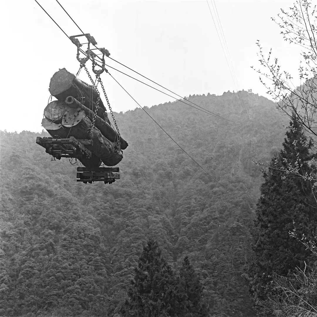 นอกจากรถป้งป้งเชอแล้ว การขนไม้ในแถบไท่ผิงซานยังใช้การชักรอกลงจากที่สูงด้วย (ภาพจากข้อมูลของกระทรวงการต่างประเทศ)