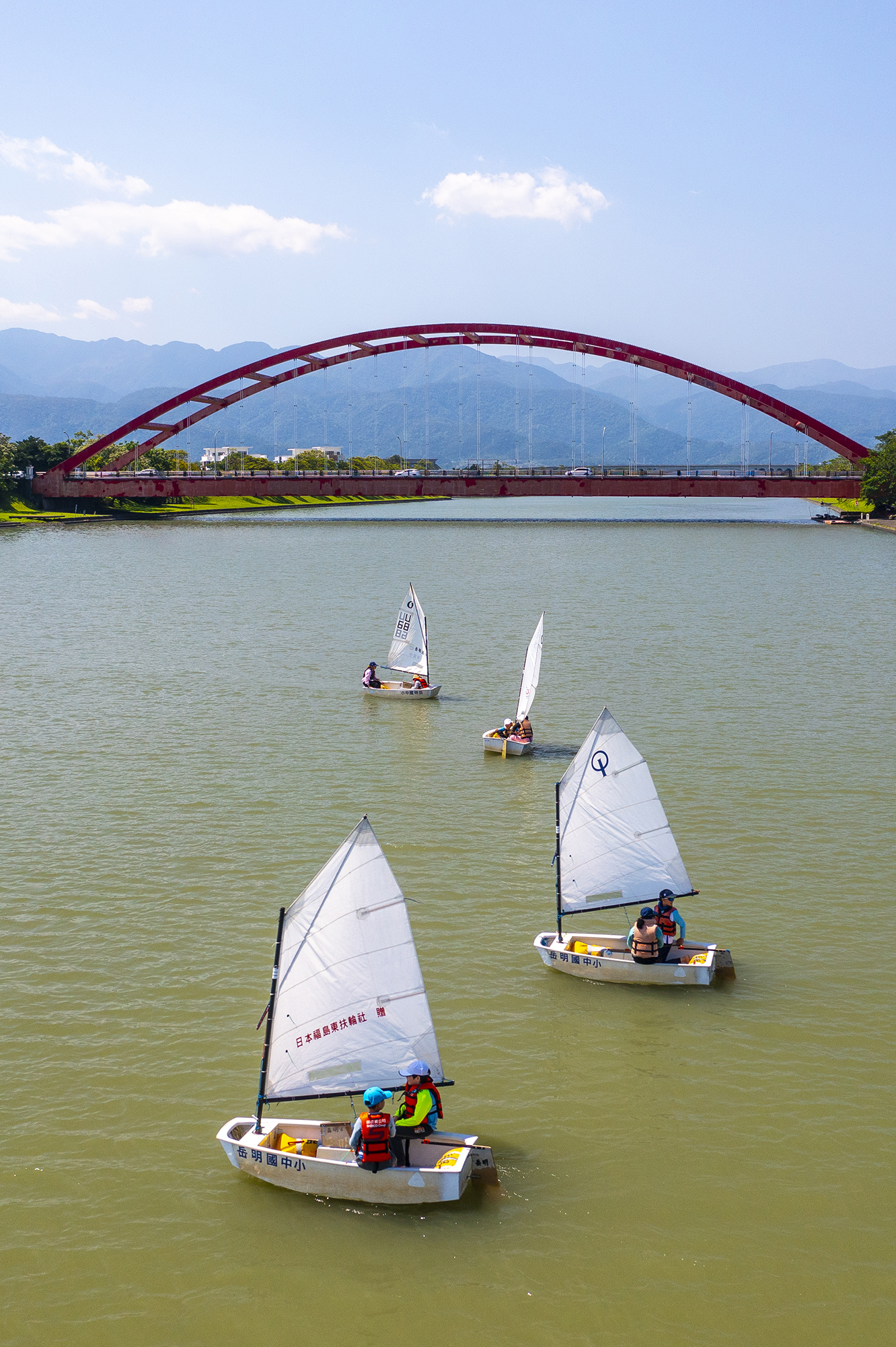 โรงเรียนเยว่หมิงสอนแล่นเรือใบที่แม่น้ำตงซานในอี๋หลาน การแล่นเรือใบไม่เพียงแต่ช่วยให้เด็ก ๆ มีทักษะการบังคับเรือใบเท่านั้น แต่ยังช่วยให้พวกเขากล้าที่จะเผชิญกับอุปสรรคในชีวิตอีกด้วย (ภาพโดย จวงคุนหรู)