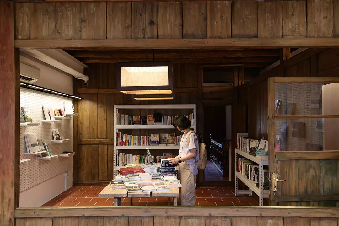 เมื่อเดินเข้าไปในร้านหนังสือกัวอี๋เหม่ยจะพบว่า เนื้อที่ส่วนใหญ่ของอาคารด้านหน้าและด้านหลังถูกเชื่อมเข้าด้วยกันผ่านนอกชาน โดยที่ด้านบนของนอกชานมีบันไดที่ทอดยาวไปสู่ชั้น 3 ของอาคาร ซึ่งช่วยแต่งเติมให้บรรยากาศของพื้นที่มีความโดดเด่นมากขึ้น โคมไฟที่ให้ความสว่างในอาคารจะใช้สีโทนที่อบอุ่น เมื่อประกอบเข้ากับวัสดุแบบเรียบง่ายที่ใช้ในการก่อสร้าง ทำให้เกิดเป็นบรรยากาศย้อนยุคในแบบเรโทร ทำให้ที่นี่เป็นสถานที่ซึ่งเมื่อได้นั่งลงไปแล้ว จิตใจจะรู้สึกถึงความสงบและผ่อนคลาย จึงถือเป็นร้านหนังสือที่เป็นที่ชื่นชอบของผู้มาเยือนไม่น้อยเช่นกัน