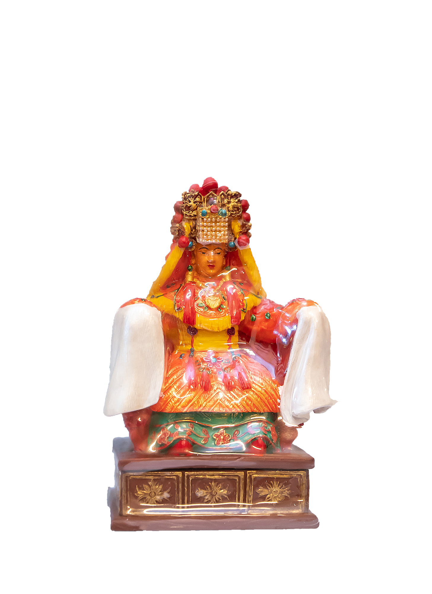 เกี้ยวที่ผู้คนแย่งกันเข้าไปรุมล้อม ภายในมีองค์เจ้าแม่มาจู่ซึ่งเป็นเทพธิดาแห่งสวรรค์ที่ได้รับการเคารพศรัทธามากที่สุดในไต้หวันประทับอยู่ มีตำนานเล่าขานสืบต่อกันมาว่า เจ้าแม่มาจู่เดิมเป็นหญิงสาวที่มีเวทมนตร์คาถา นามว่า หลินม่อ (林默) มีชีวิตอยู่ในยุคราชวงศ์ซ่งเหนือ (ค.ศ. 960-1127) เดิมเป็นเทพธิดาที่คอยปกปักรักษาและคุ้มครองความปลอดภัยให้แก่ชาวประมงในพื้นที่เลียบชายฝั่งทะเลในมณฑลฝูเจี้ยน ซึ่งอยู่ทางภาคตะวันออกเฉียงใต้ของจีน แต่เมื่อกาลเวลาผ่านไปนานวันเข้า เรื่องราวเกี่ยวกับอิทธิฤทธิ์และความศักดิ์สิทธิ์ของเจ้าแม่มาจู่ ถูกกล่าวขานและมีการเล่าต่อ ๆ กันมากขึ้น จนกลายเป็นอานุภาพของเจ้าแม่มาจู่ครอบคลุมทุกอย่างที่เกี่ยวข้องกับ “น้ำ” และเจ้าแม่มาจู่ยังได้รับการขนานนามว่า เทพแห่งการชลประทาน และเทพแห่งการเกษตรอีกด้วย