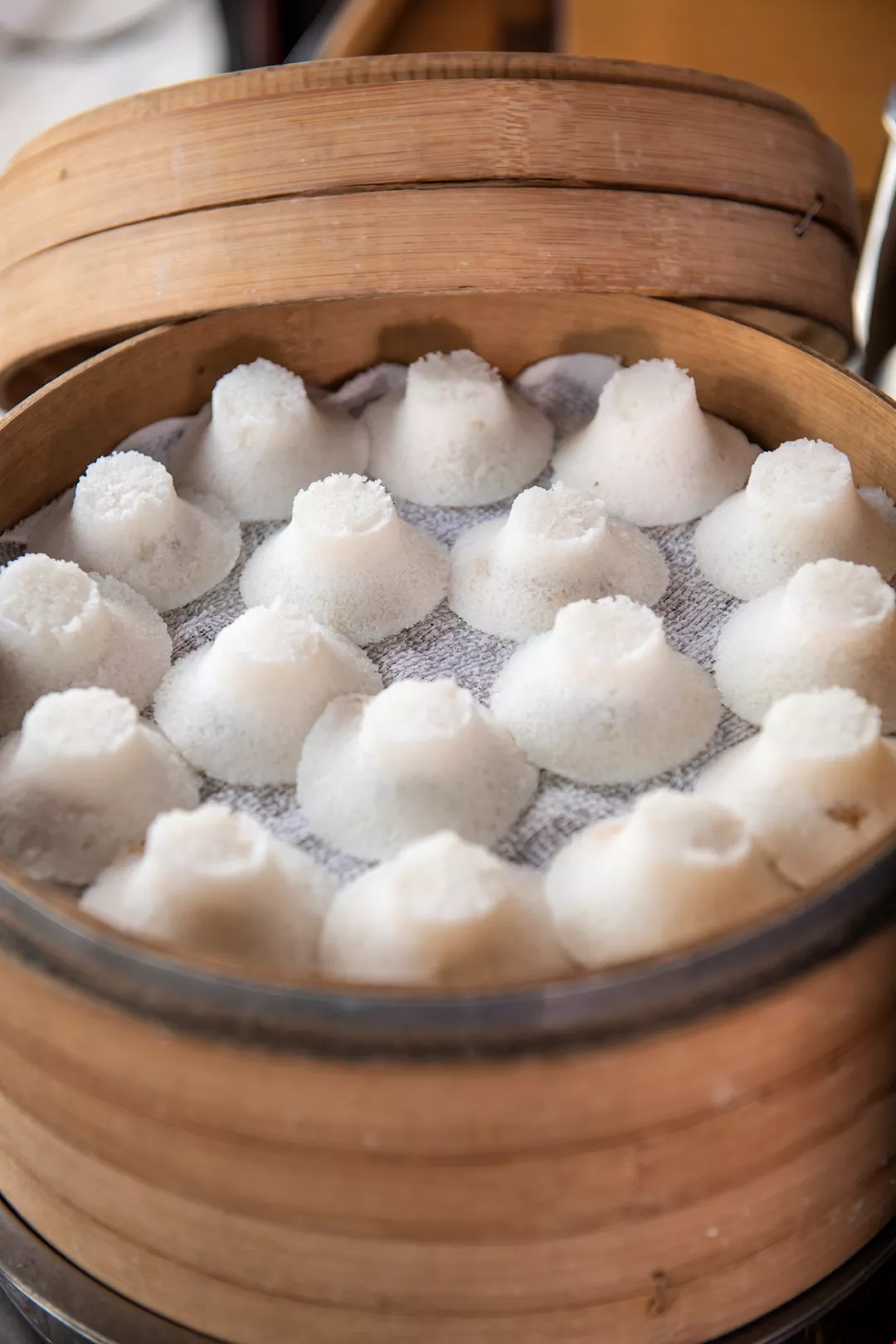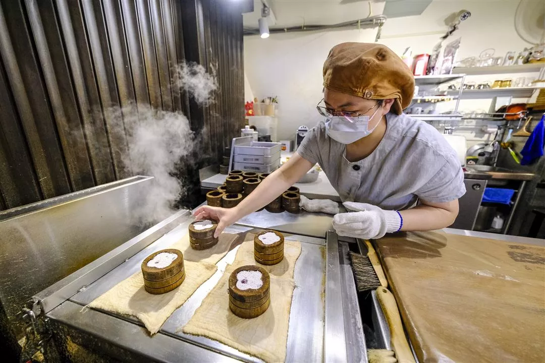 แผงลอยเล็ก ๆ ข้างทางที่มีไอน้ำฟุ้งตลบอบอวล กำลังนึ่งขนมที่ทำจากข้าว แต่ละชิ้นมีสีขาวบริสุทธิ์และรูปลักษณ์เรียบง่าย แผงลอยที่เป็นเสมือนเวทีเล็ก ๆ แห่งนี้ สะท้อนให้เห็นถึงความงดงามและคุณค่าของอาหารแปรรูปที่ทำจากข้าว อีกทั้งยังแสดงให้เห็นถึงความเป็นไปได้อย่างไร้ขีดจำกัดของวิวัฒนาการอาหารแปรรูปจากข้าวที่มีมาเป็นเวลายาวนาน